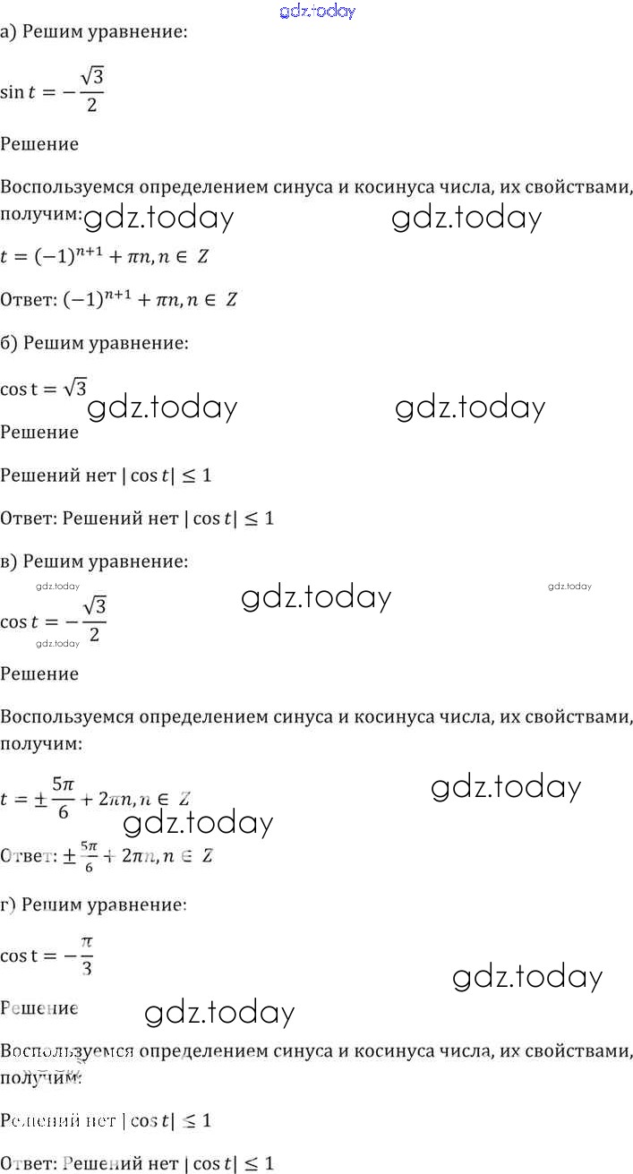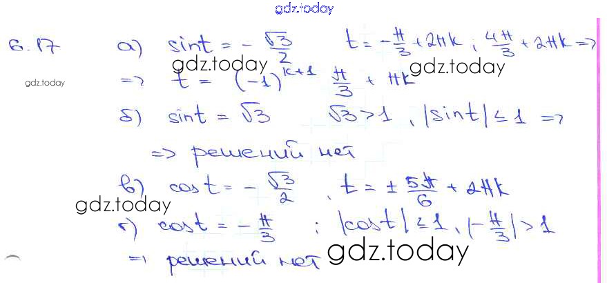 Ответы к §6. Синус и косинус. Тангенс и катангенс Глава 2 6. 17 Задачнику по Алгебре для 10-11 класса Мордкович, Денищева Базовый уровень Мнемозина 2015