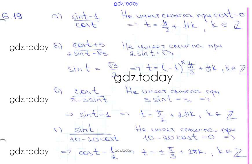 Ответы к §6. Синус и косинус. Тангенс и катангенс Глава 2 6. 19 Задачнику по Алгебре для 10-11 класса Мордкович, Денищева Базовый уровень Мнемозина 2015