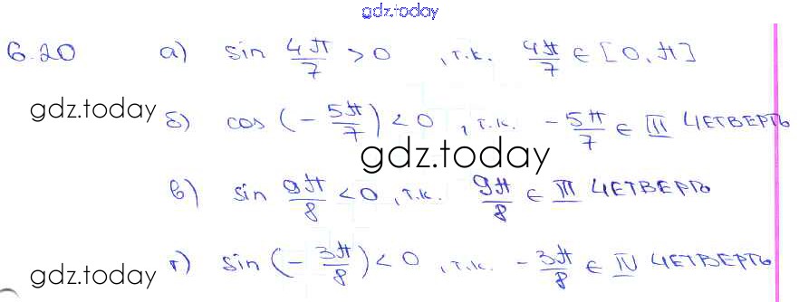 Ответы к §6. Синус и косинус. Тангенс и катангенс Глава 2 6. 20 Задачнику по Алгебре для 10-11 класса Мордкович, Денищева Базовый уровень Мнемозина 2015