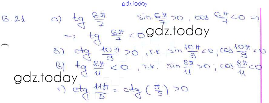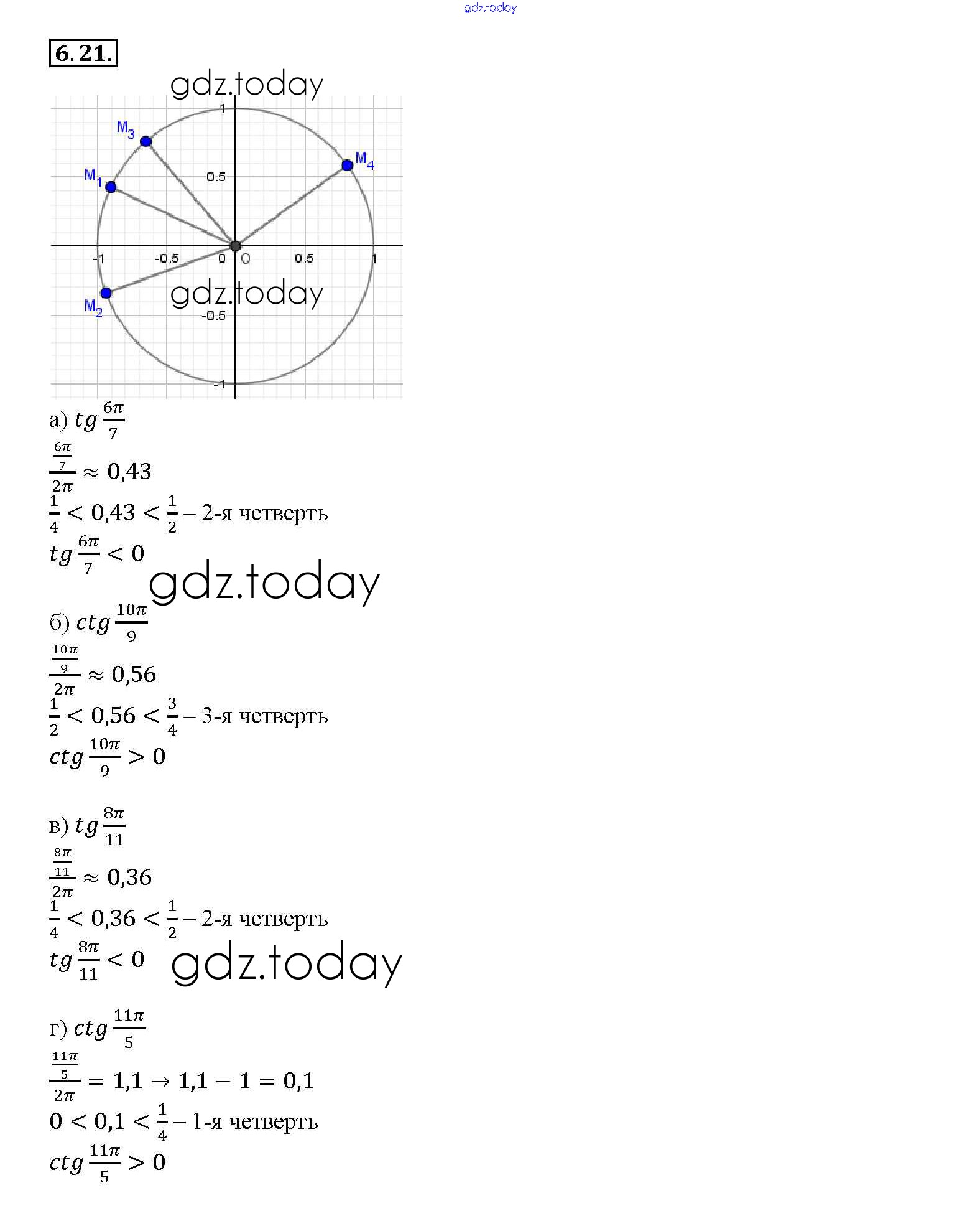 Ответы к §6. Синус и косинус. Тангенс и катангенс Глава 2 6. 21 Задачнику по Алгебре для 10-11 класса Мордкович, Денищева Базовый уровень Мнемозина 2015