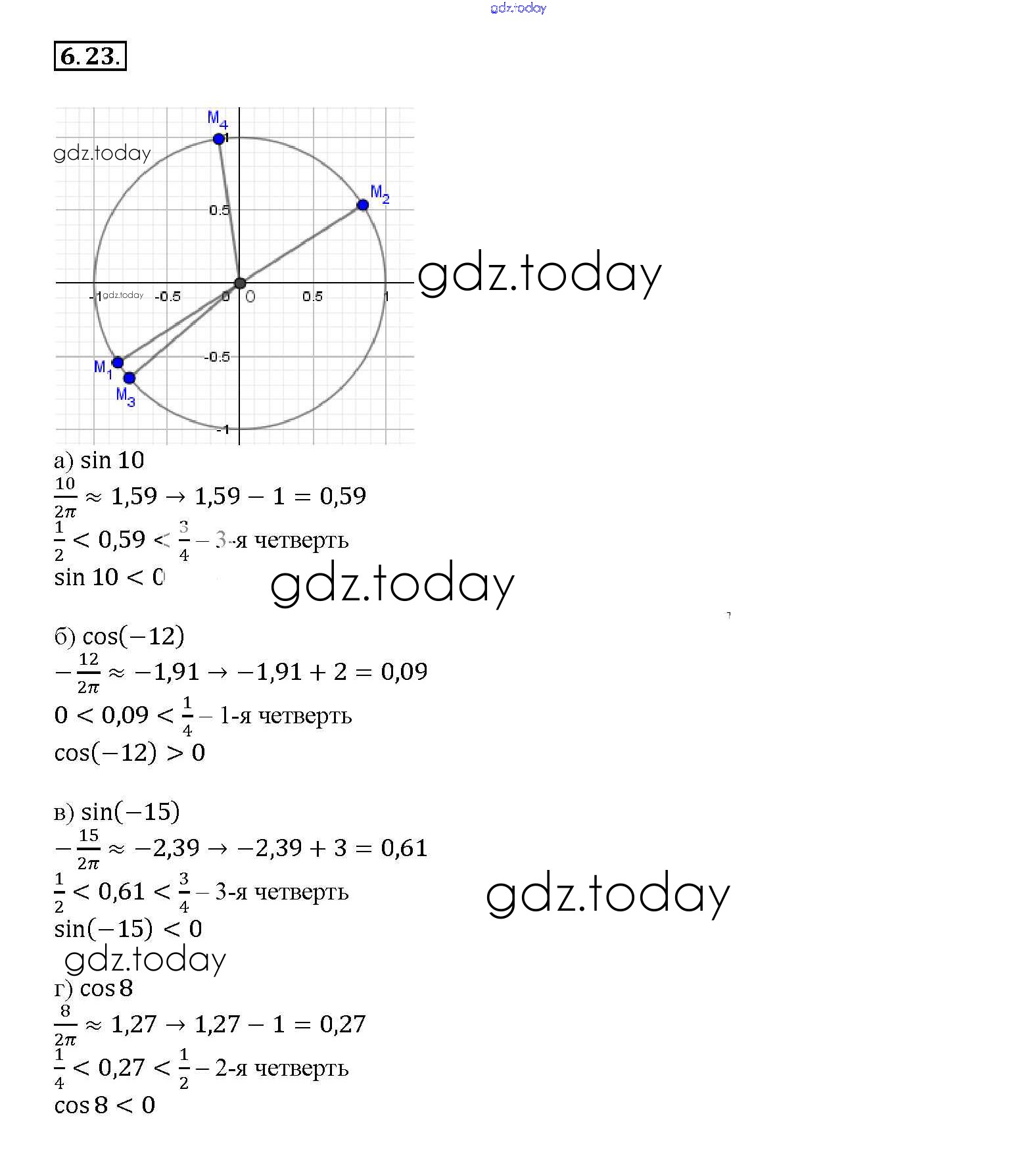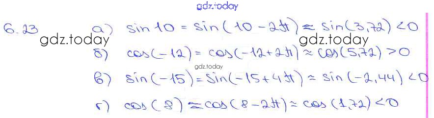 Ответы к §6. Синус и косинус. Тангенс и катангенс Глава 2 6. 23 Задачнику по Алгебре для 10-11 класса Мордкович, Денищева Базовый уровень Мнемозина 2015