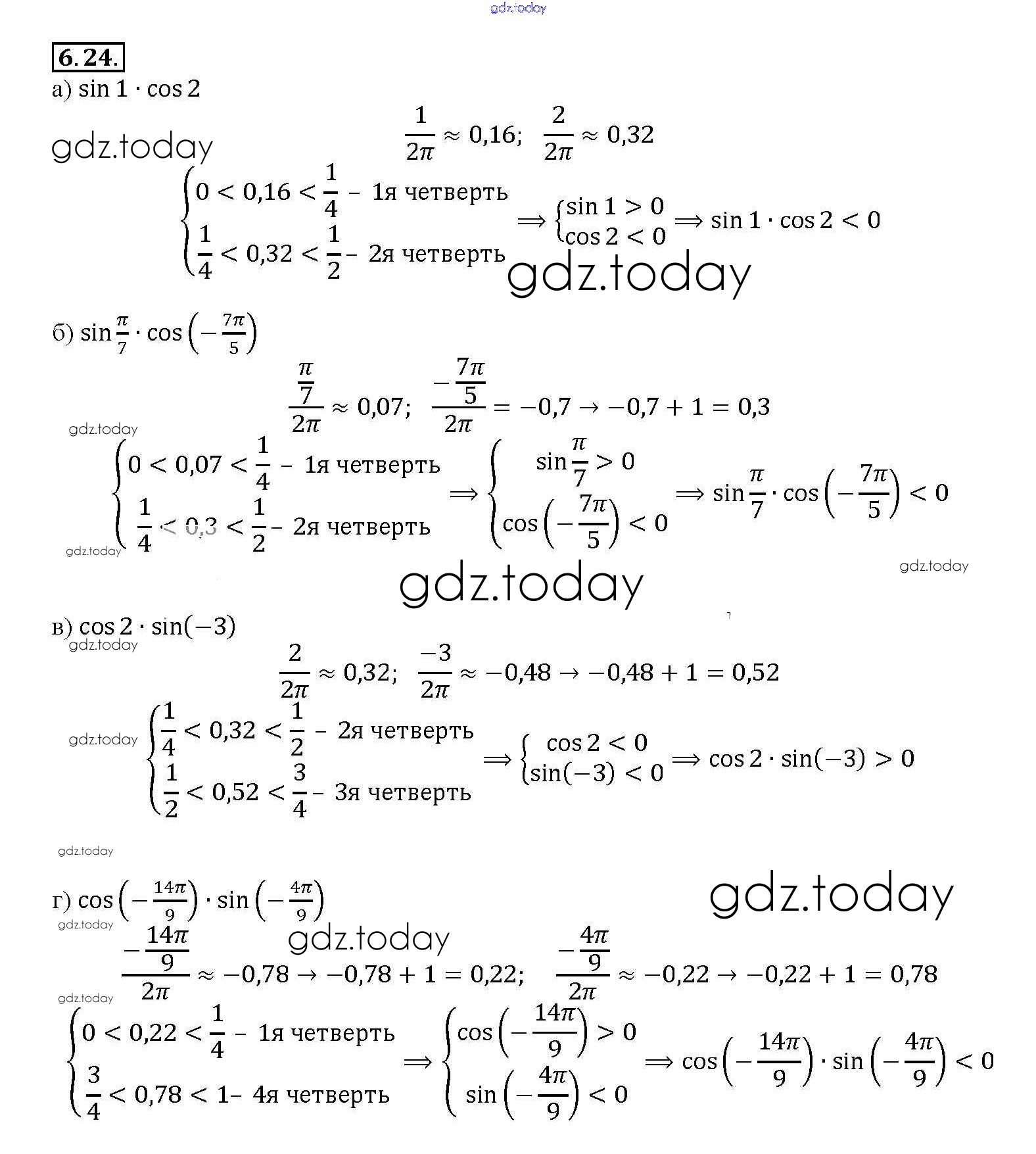 Ответы к §6. Синус и косинус. Тангенс и катангенс Глава 2 6. 24 Задачнику по Алгебре для 10-11 класса Мордкович, Денищева Базовый уровень Мнемозина 2015