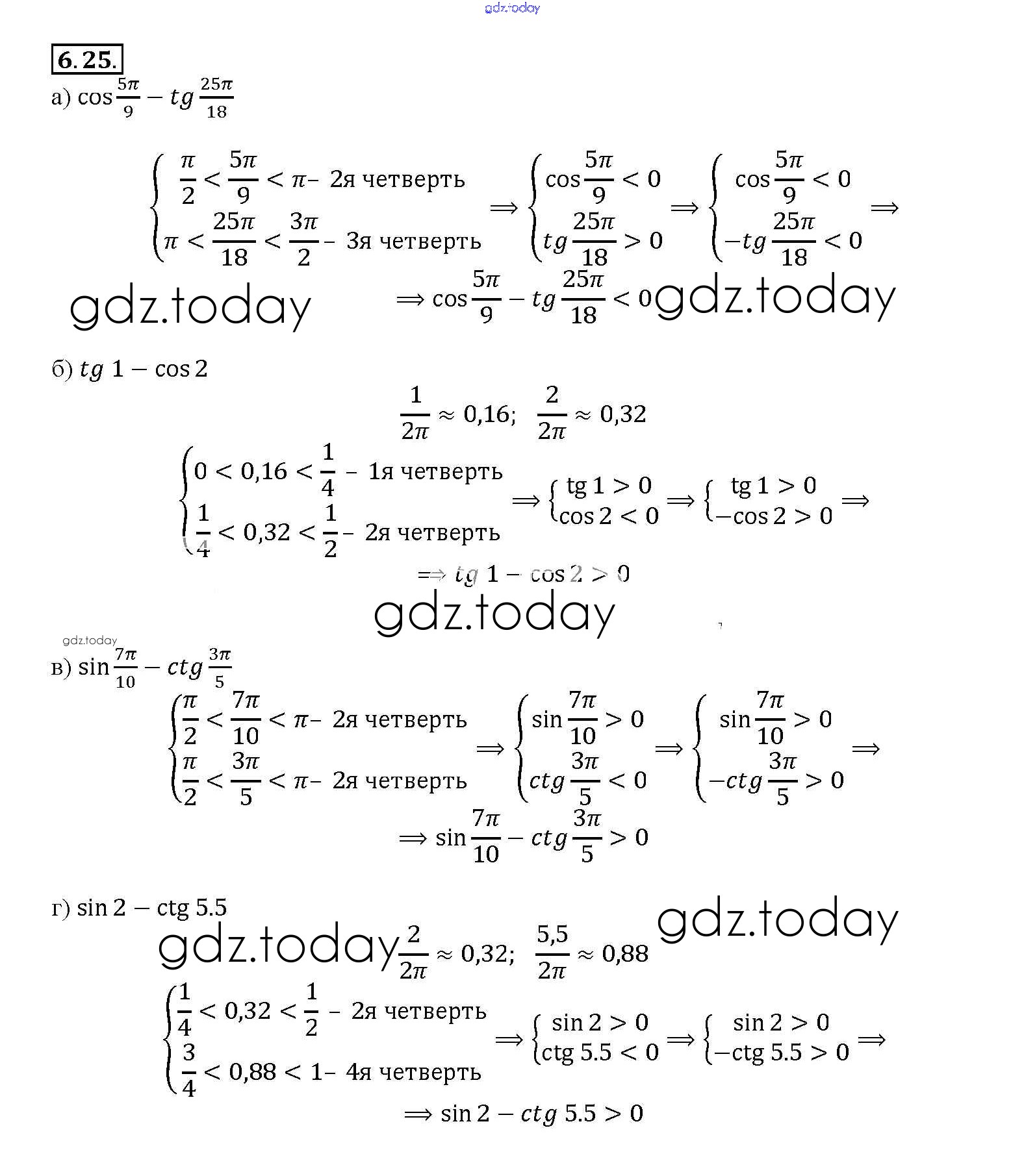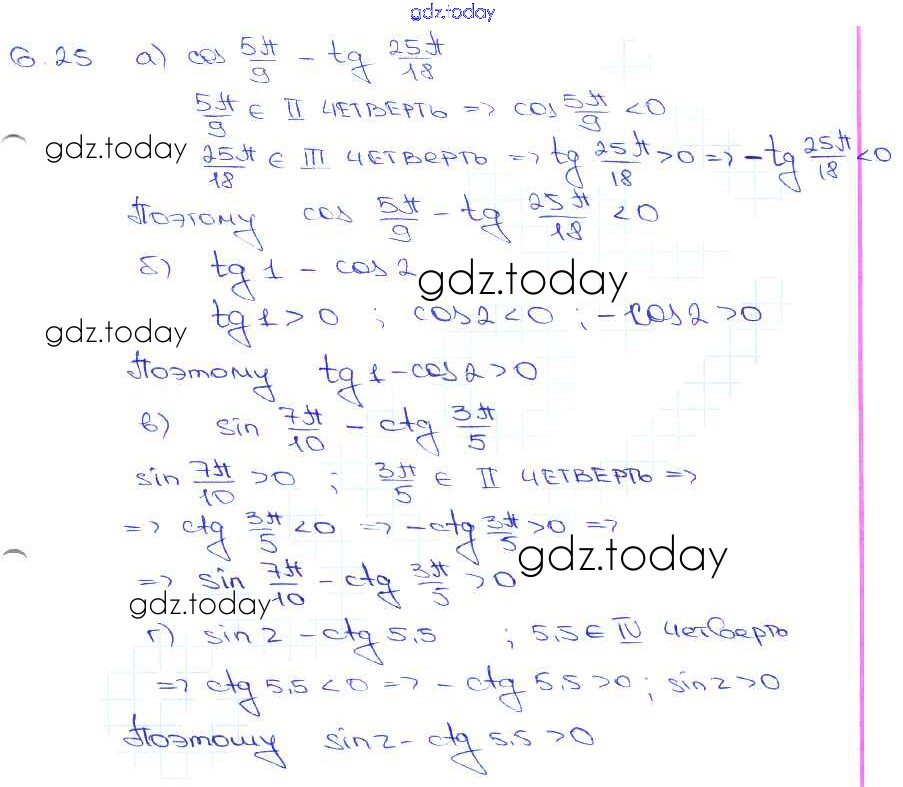 Ответы к §6. Синус и косинус. Тангенс и катангенс Глава 2 6. 25 Задачнику по Алгебре для 10-11 класса Мордкович, Денищева Базовый уровень Мнемозина 2015