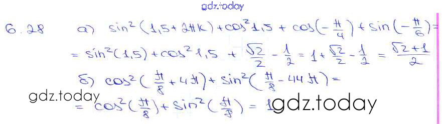 Ответы к §6. Синус и косинус. Тангенс и катангенс Глава 2 6. 28 Задачнику по Алгебре для 10-11 класса Мордкович, Денищева Базовый уровень Мнемозина 2015
