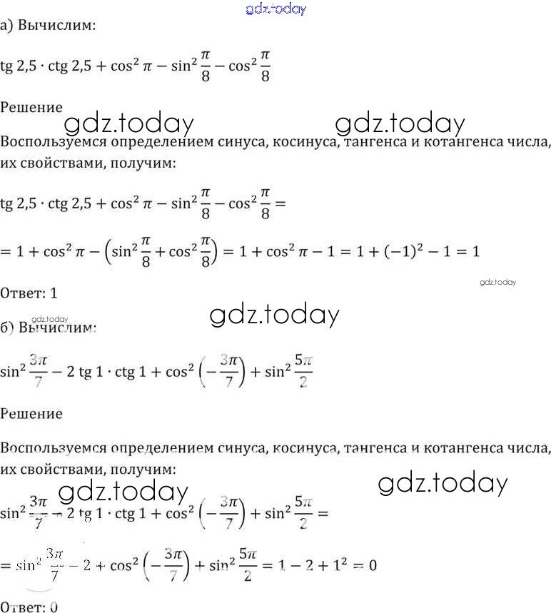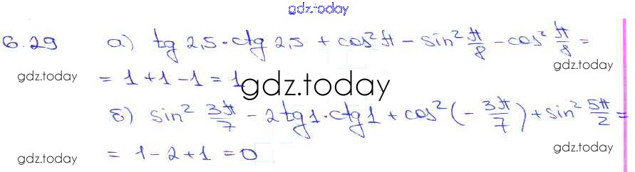 Ответы к §6. Синус и косинус. Тангенс и катангенс Глава 2 6. 29 Задачнику по Алгебре для 10-11 класса Мордкович, Денищева Базовый уровень Мнемозина 2015