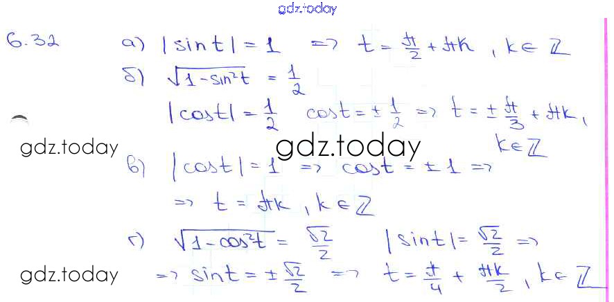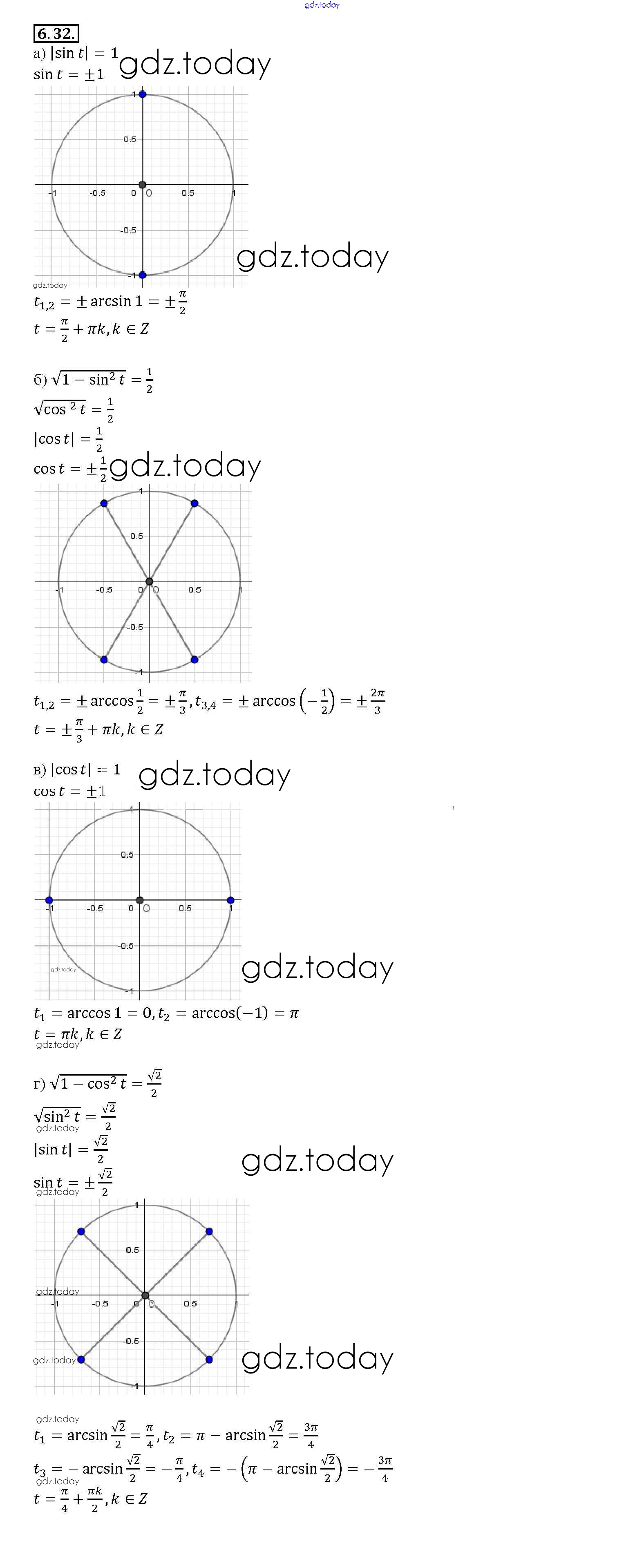 Ответы к §6. Синус и косинус. Тангенс и катангенс Глава 2 6. 32 Задачнику по Алгебре для 10-11 класса Мордкович, Денищева Базовый уровень Мнемозина 2015