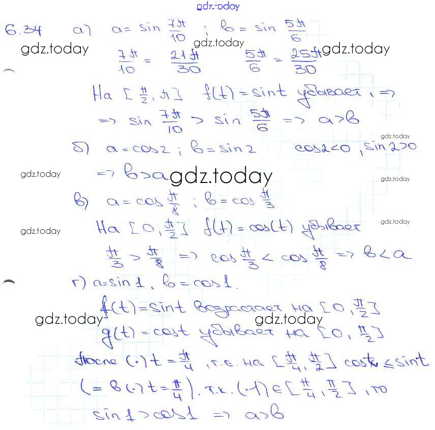 На страницах сайта gdz.today вы найдете учебный и вспомогательный материал, направленный на улучшения знаний школьной программы. ГДЗ - онлайн мир знаний §6. Синус и косинус. Тангенс и катангенс Глава 2 6. 34 Задачнику по Алгебре для 10-11 класса Мордкович, Денищева Базовый уровень Мнемозина 2015