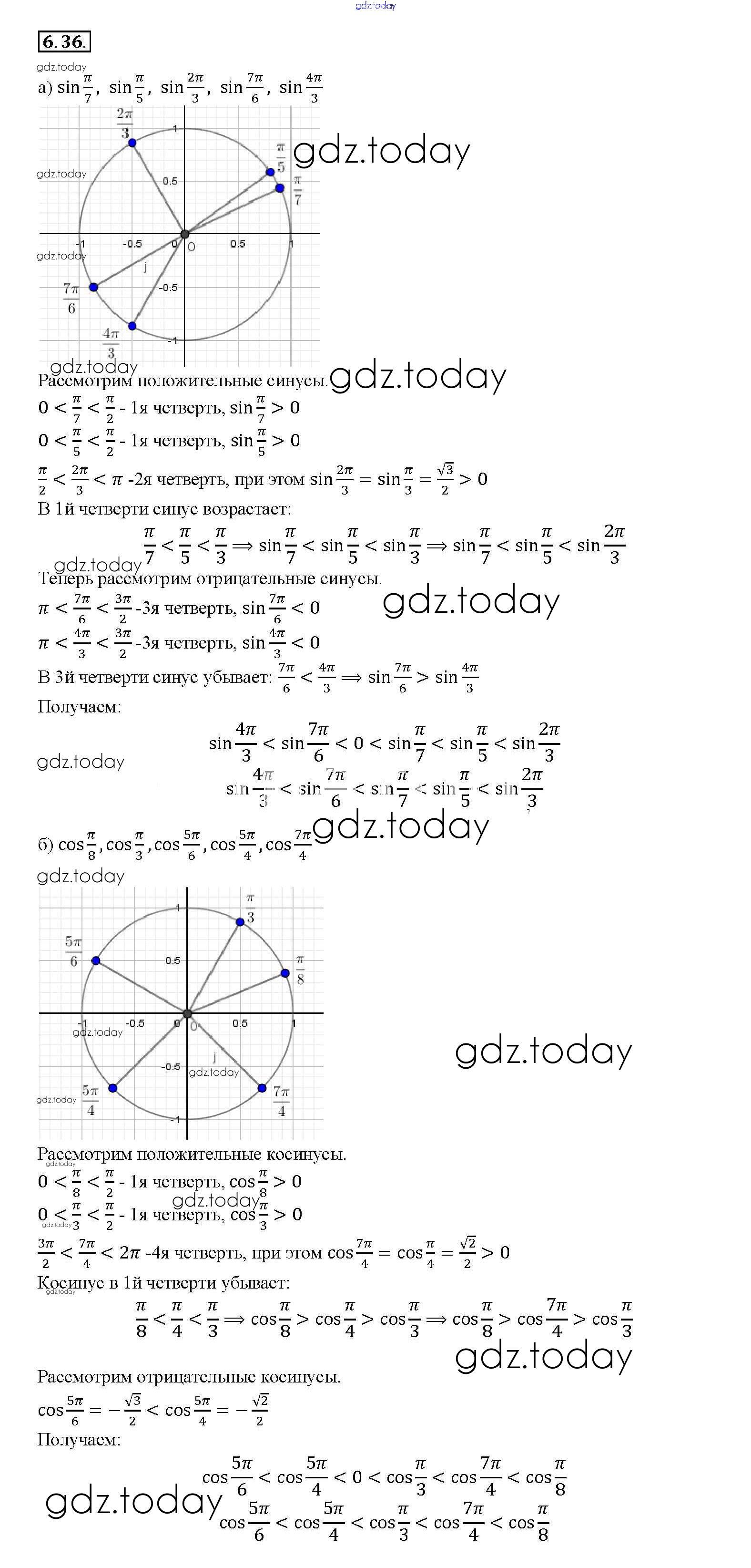 Ответы к §6. Синус и косинус. Тангенс и катангенс Глава 2 6. 36 Задачнику по Алгебре для 10-11 класса Мордкович, Денищева Базовый уровень Мнемозина 2015