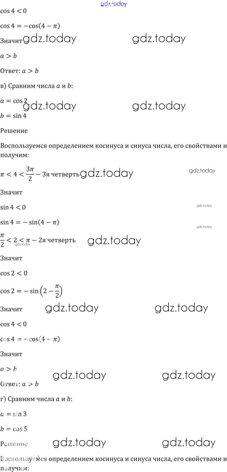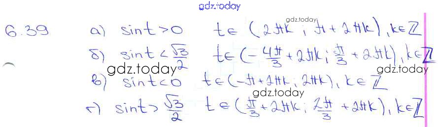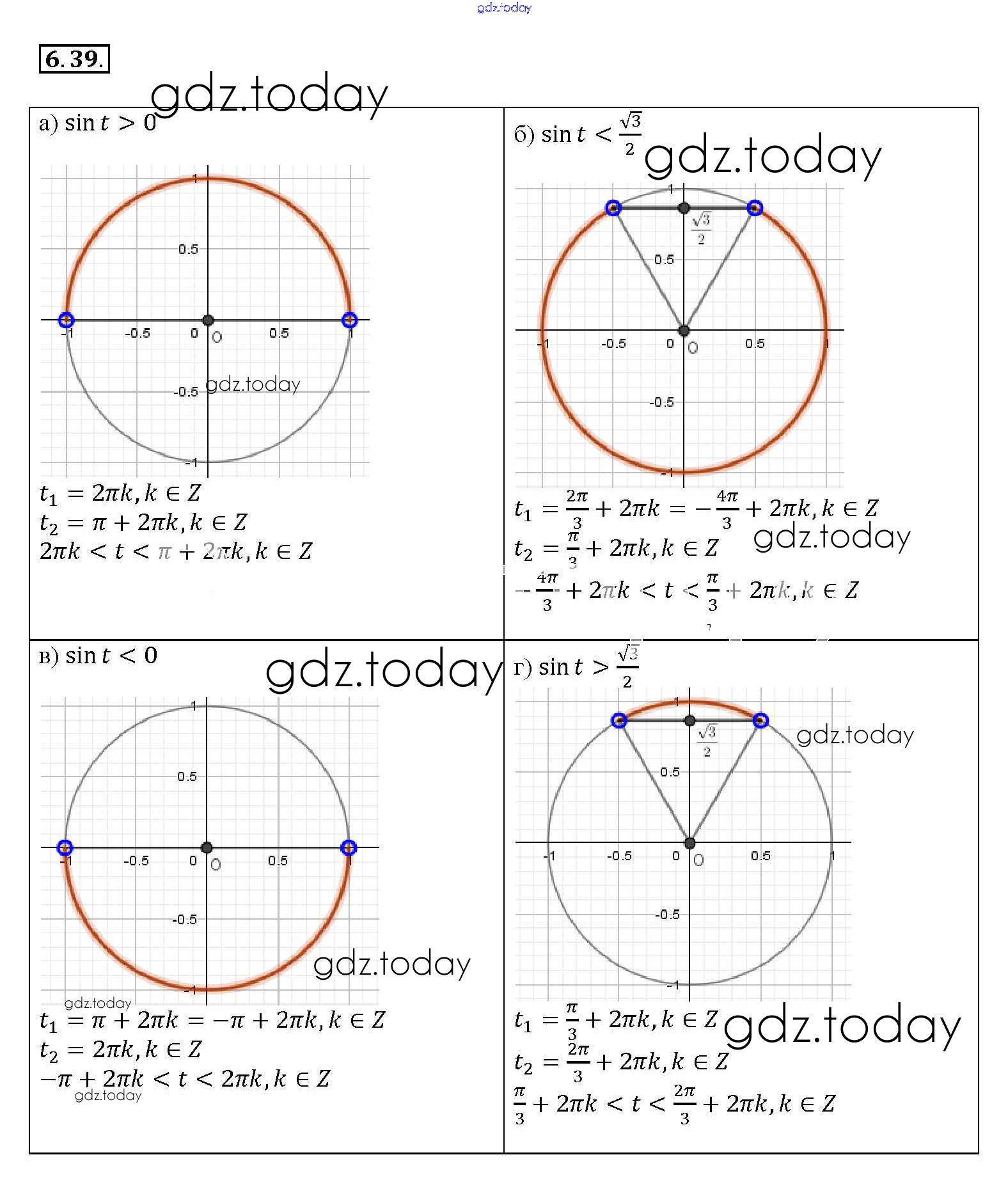 Ответы к §6. Синус и косинус. Тангенс и катангенс Глава 2 6. 39 Задачнику по Алгебре для 10-11 класса Мордкович, Денищева Базовый уровень Мнемозина 2015