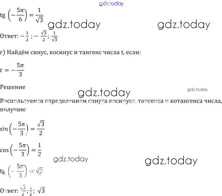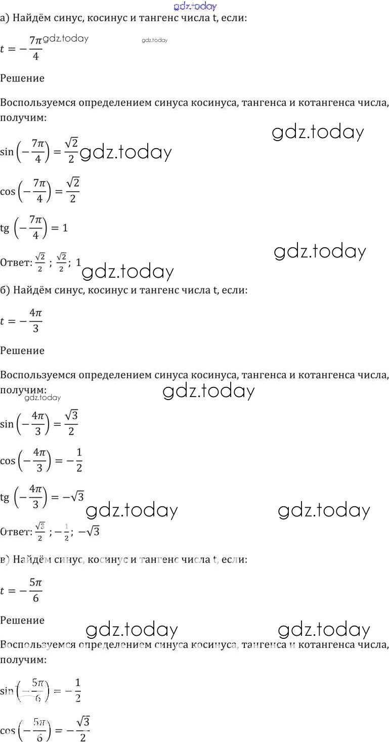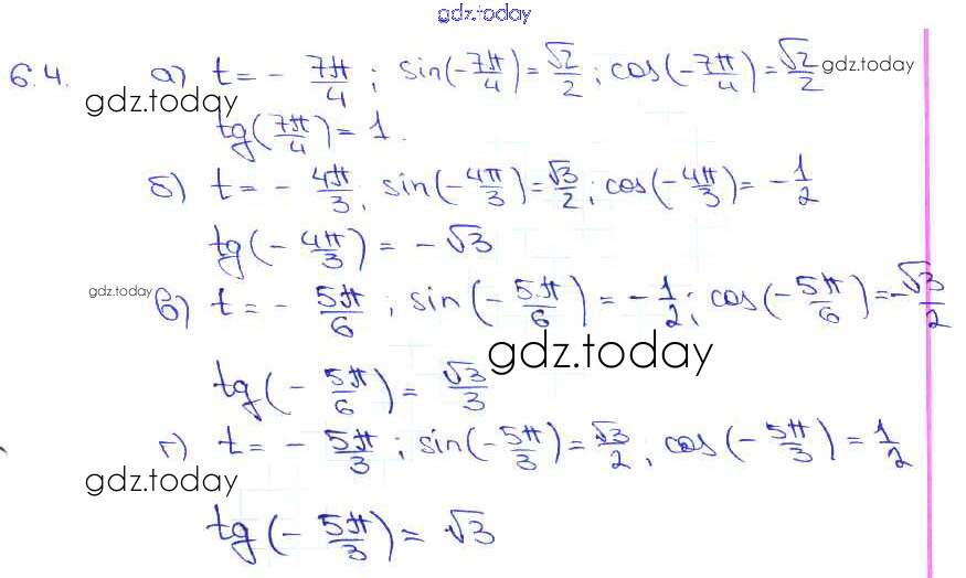 Ответы к §6. Синус и косинус. Тангенс и катангенс Глава 2 6. 4 Задачнику по Алгебре для 10-11 класса Мордкович, Денищева Базовый уровень Мнемозина 2015