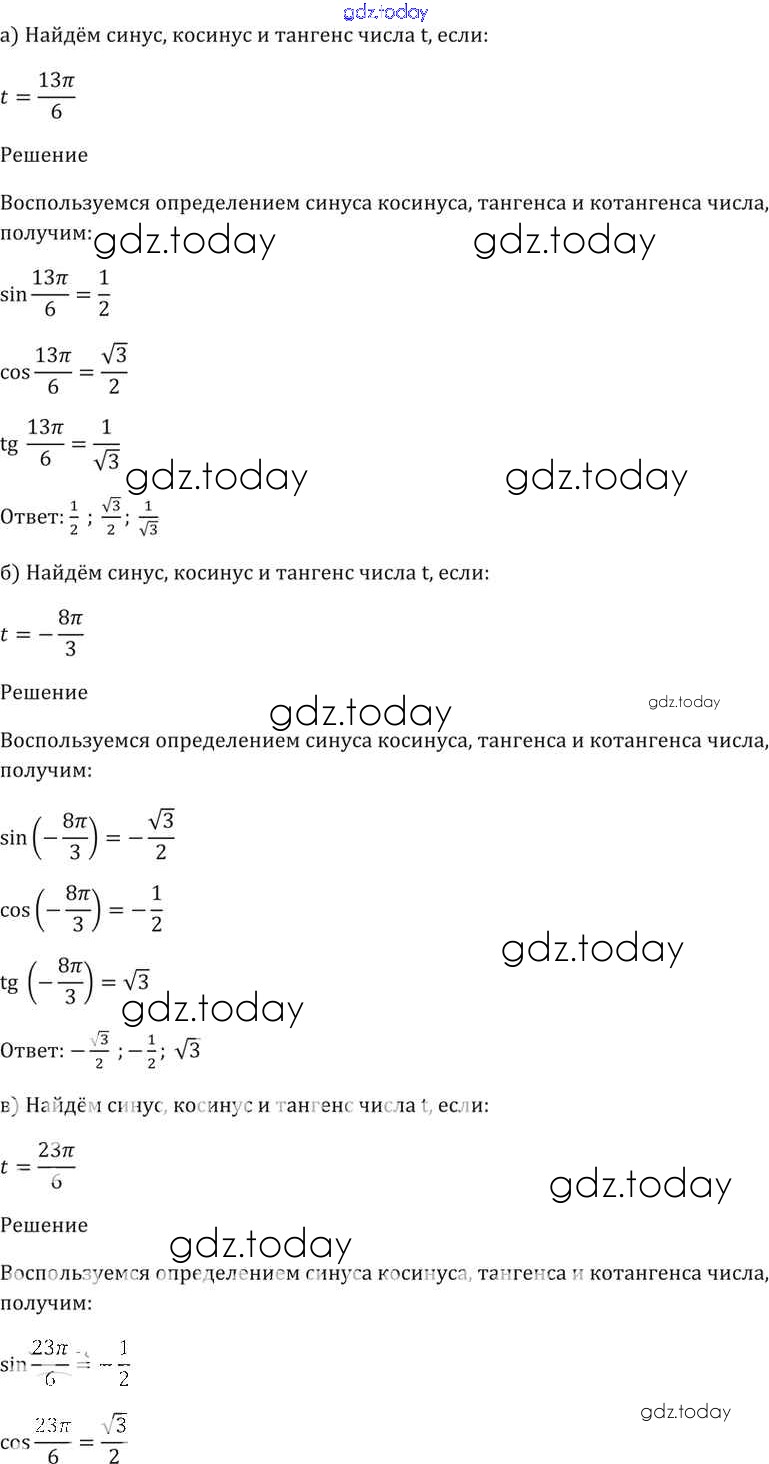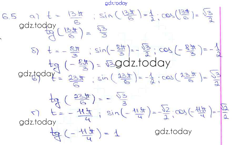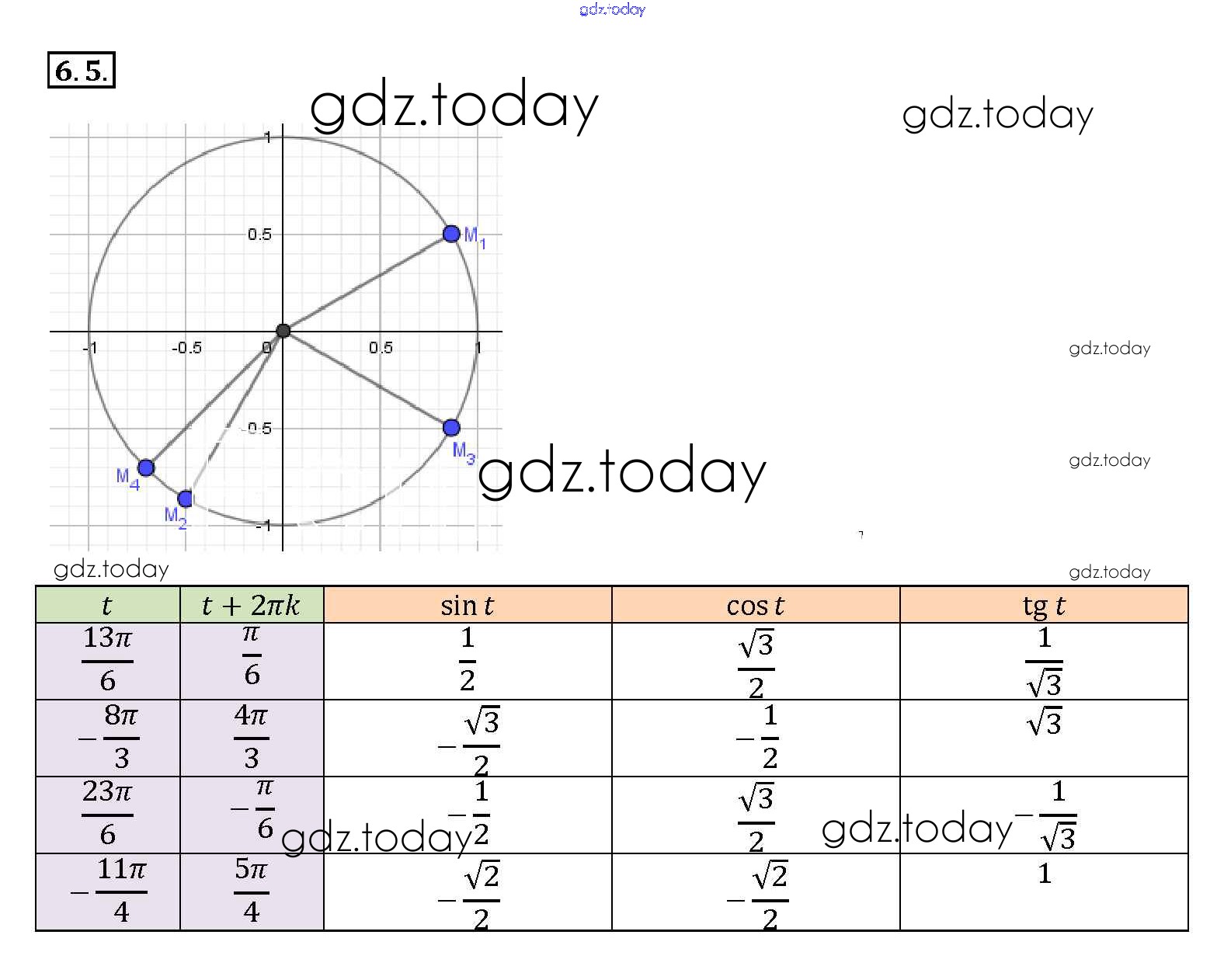 Ответы к §6. Синус и косинус. Тангенс и катангенс Глава 2 6. 5 Задачнику по Алгебре для 10-11 класса Мордкович, Денищева Базовый уровень Мнемозина 2015