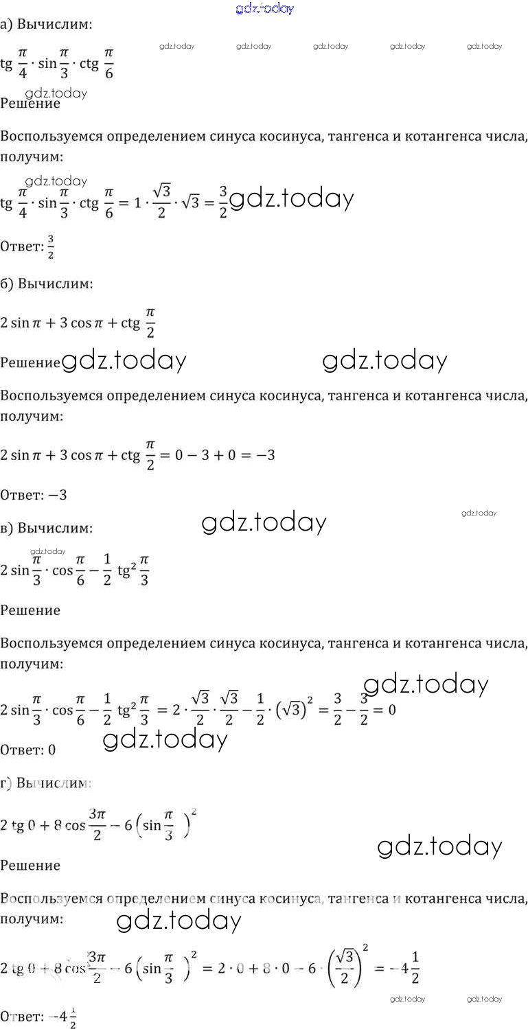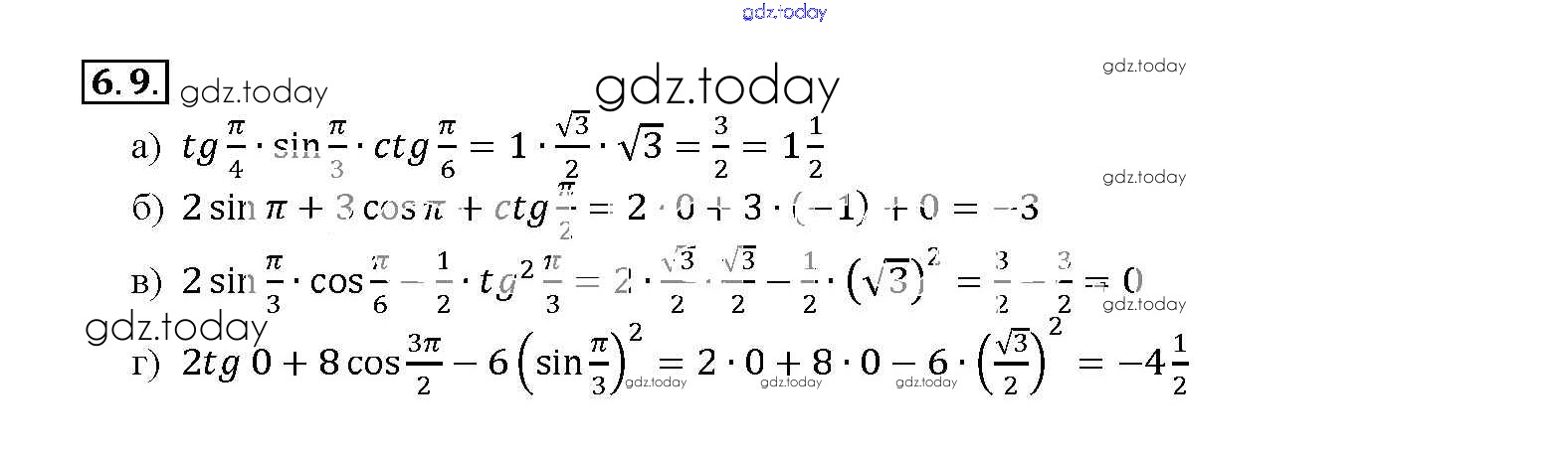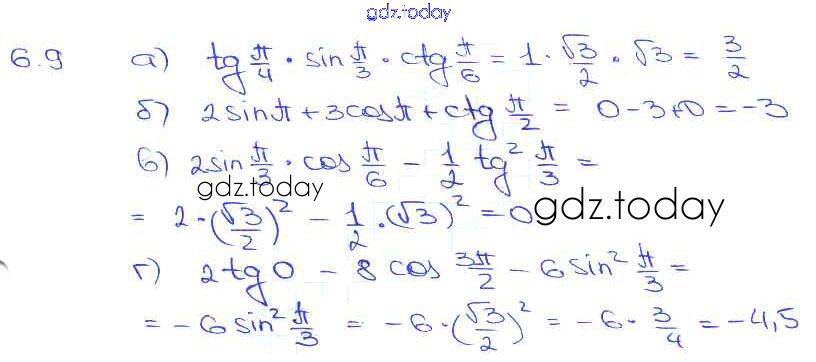 Ответы к §6. Синус и косинус. Тангенс и катангенс Глава 2 6. 9 Задачнику по Алгебре для 10-11 класса Мордкович, Денищева Базовый уровень Мнемозина 2015
