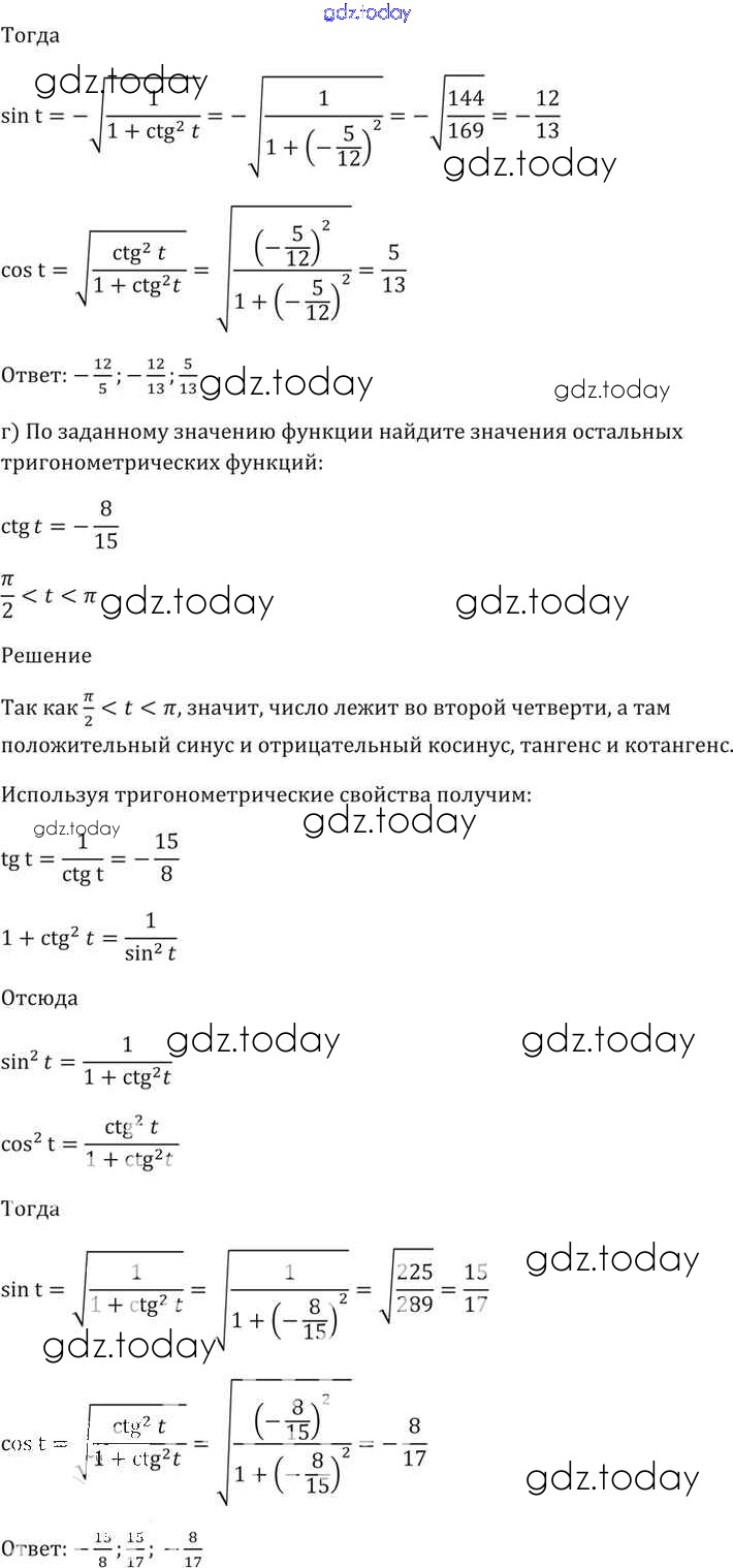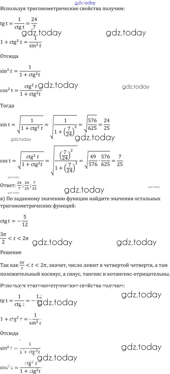 Ответы к §7. Тригонометрические функции числового аргумента Глава 2 7. 10 Задачнику по Алгебре для 10-11 класса Мордкович, Денищева Базовый уровень Мнемозина 2015