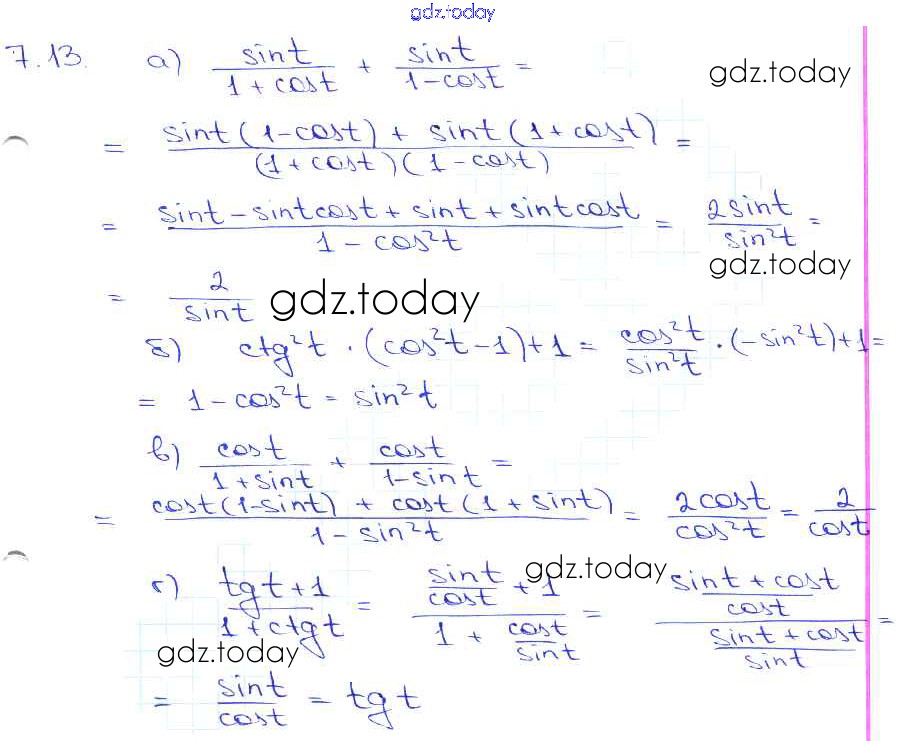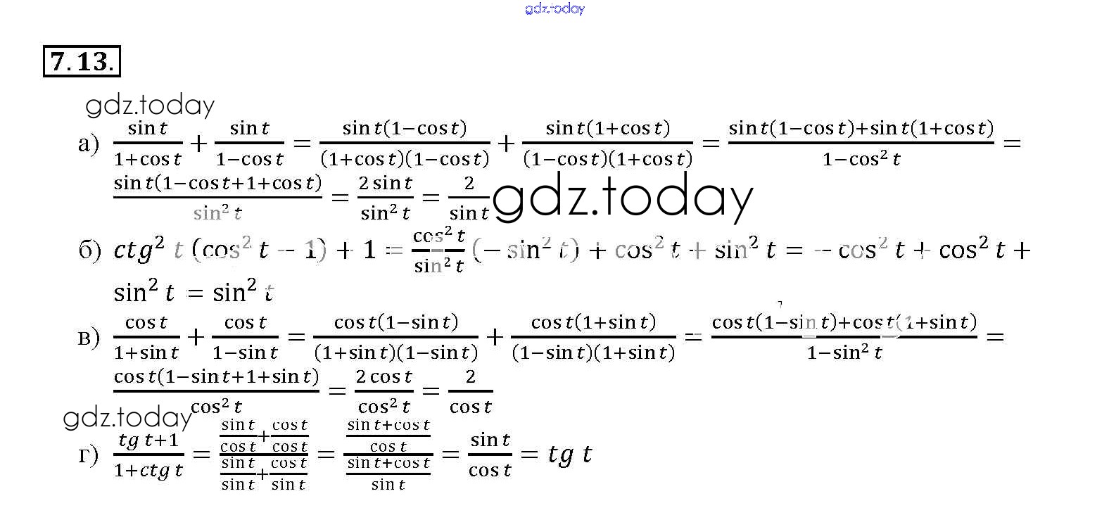 На страницах сайта gdz.today вы найдете учебный и вспомогательный материал, направленный на улучшения знаний школьной программы. ГДЗ - онлайн мир знаний §7. Тригонометрические функции числового аргумента Глава 2 7. 13 Задачнику по Алгебре для 10-11 класса Мордкович, Денищева Базовый уровень Мнемозина 2015