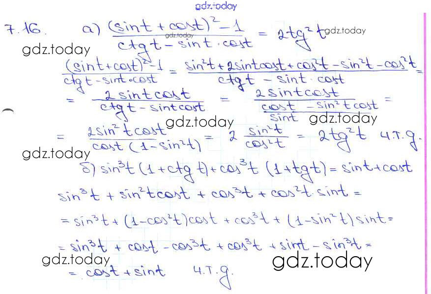 На страницах сайта gdz.today вы найдете учебный и вспомогательный материал, направленный на улучшения знаний школьной программы. ГДЗ - онлайн мир знаний §7. Тригонометрические функции числового аргумента Глава 2 7. 16 Задачнику по Алгебре для 10-11 класса Мордкович, Денищева Базовый уровень Мнемозина 2015