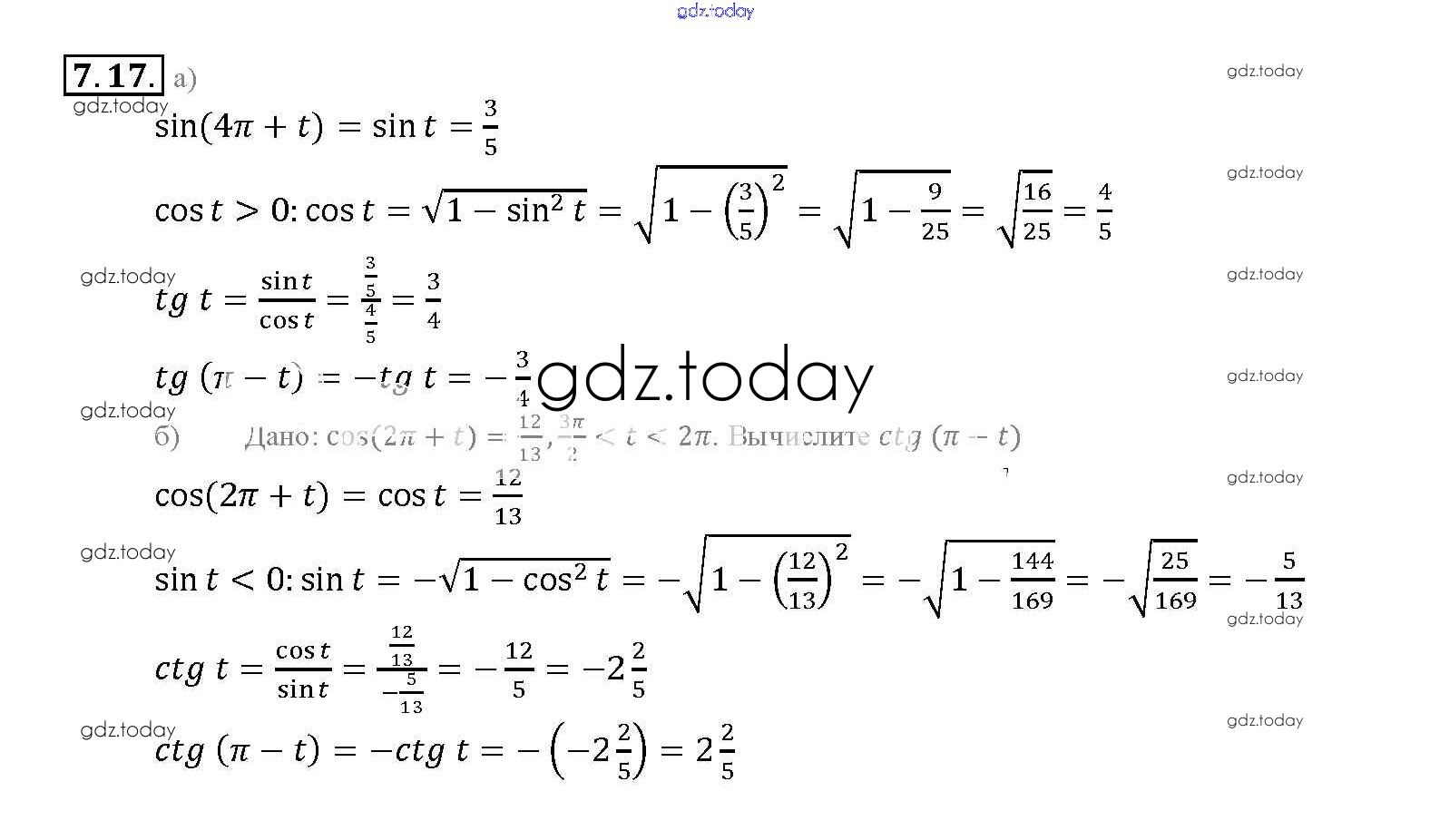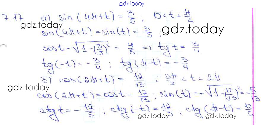 На страницах сайта gdz.today вы найдете учебный и вспомогательный материал, направленный на улучшения знаний школьной программы. ГДЗ - онлайн мир знаний §7. Тригонометрические функции числового аргумента Глава 2 7. 17 Задачнику по Алгебре для 10-11 класса Мордкович, Денищева Базовый уровень Мнемозина 2015