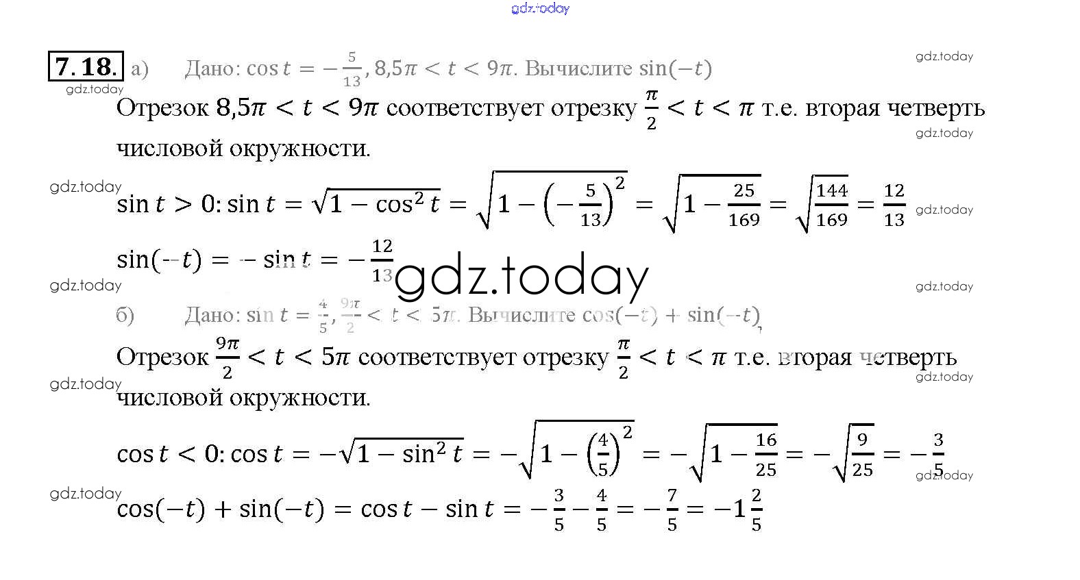 На страницах сайта gdz.today вы найдете учебный и вспомогательный материал, направленный на улучшения знаний школьной программы. ГДЗ - онлайн мир знаний §7. Тригонометрические функции числового аргумента Глава 2 7. 18 Задачнику по Алгебре для 10-11 класса Мордкович, Денищева Базовый уровень Мнемозина 2015