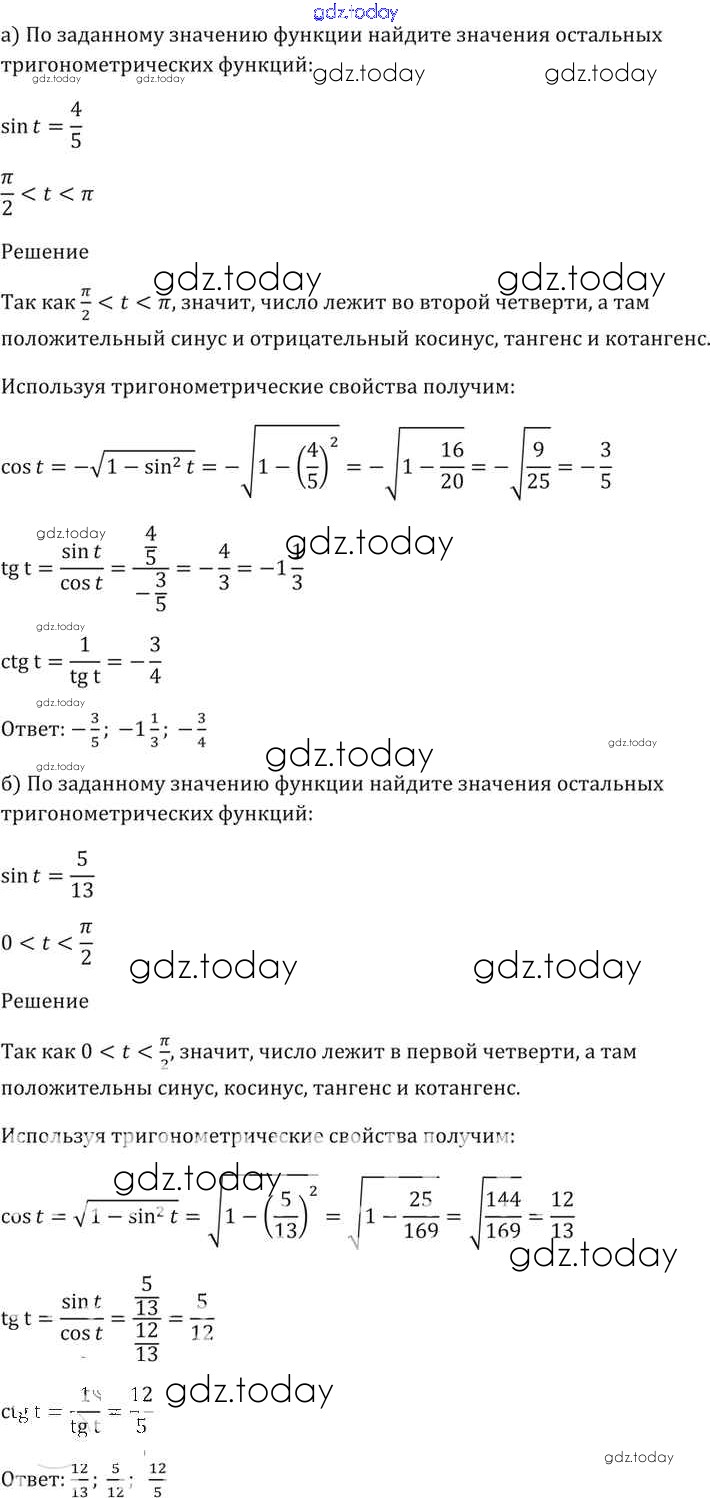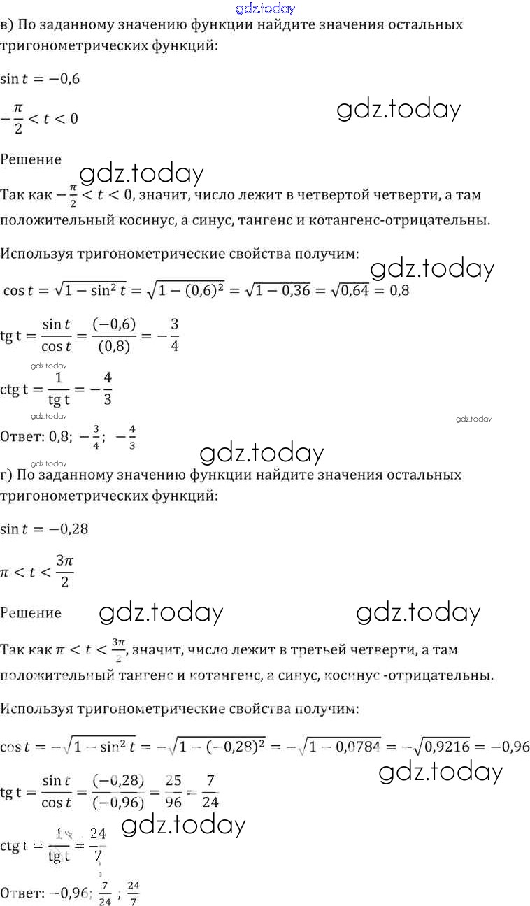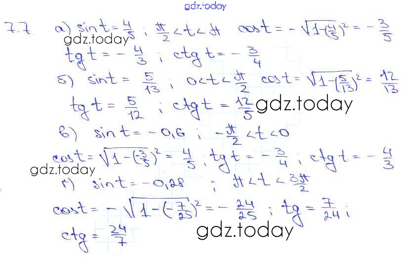 Ответы к §7. Тригонометрические функции числового аргумента Глава 2 7. 7 Задачнику по Алгебре для 10-11 класса Мордкович, Денищева Базовый уровень Мнемозина 2015