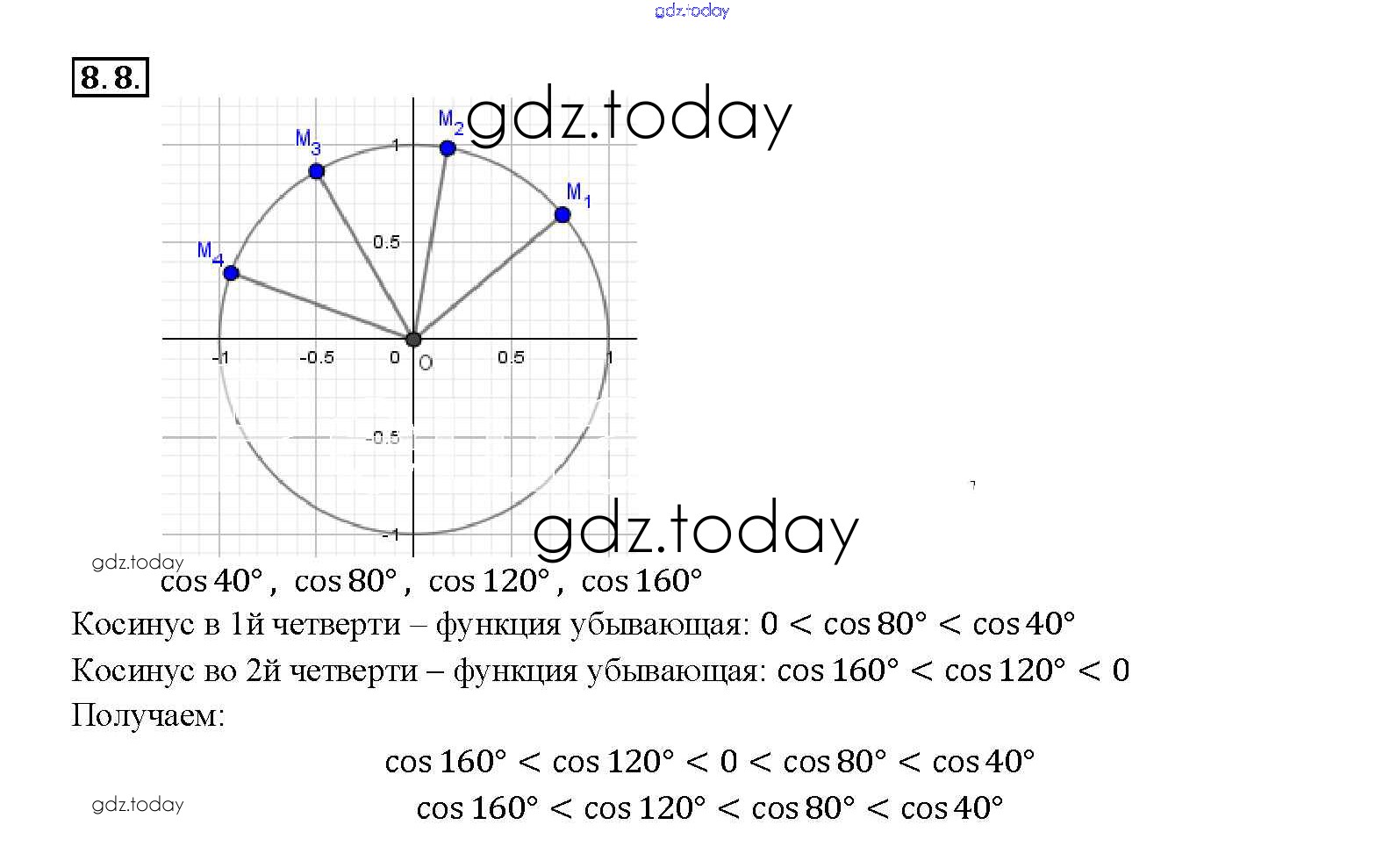 Ответы к §8. Тригонометрические функции углового аргумента Глава 2 8. 8 Задачнику по Алгебре для 10-11 класса Мордкович, Денищева Базовый уровень Мнемозина 2015