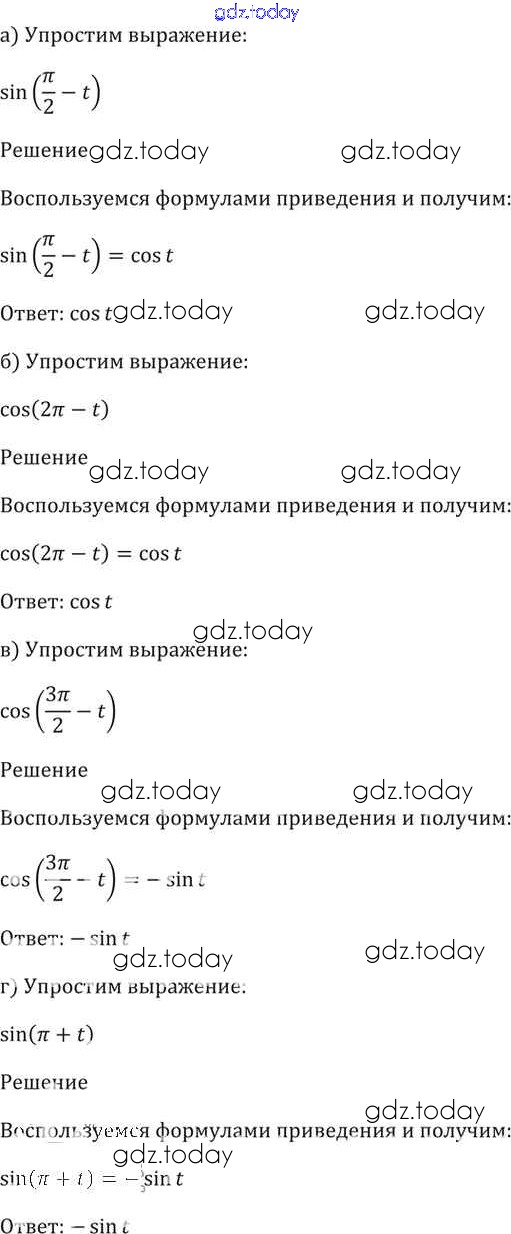 На страницах сайта gdz.today вы найдете учебный и вспомогательный материал, направленный на улучшения знаний школьной программы. ГДЗ - онлайн мир знаний §9. Формулы приведения Глава 2 9. 1 Задачнику по Алгебре для 10-11 класса Мордкович, Денищева Базовый уровень Мнемозина 2015