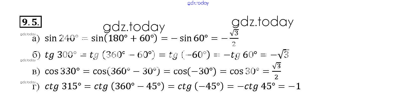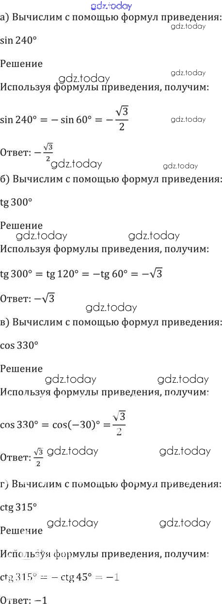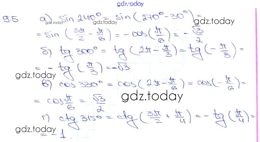 Ответы к §9. Формулы приведения Глава 2 9. 5 Задачнику по Алгебре для 10-11 класса Мордкович, Денищева Базовый уровень Мнемозина 2015
