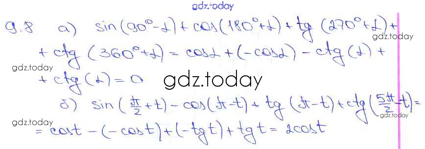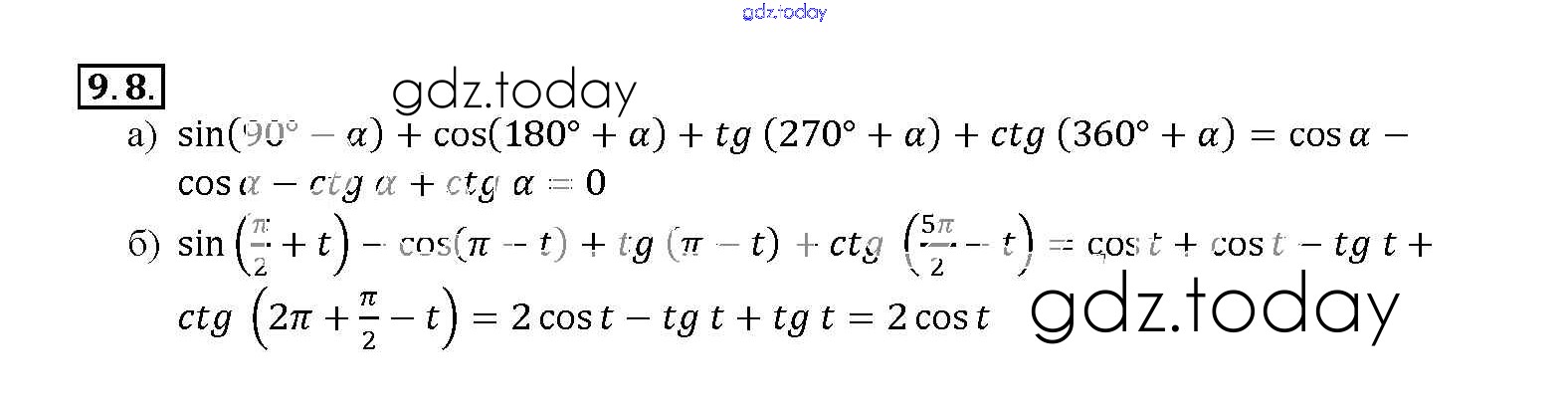 Ответы к §9. Формулы приведения Глава 2 9. 8 Задачнику по Алгебре для 10-11 класса Мордкович, Денищева Базовый уровень Мнемозина 2015
