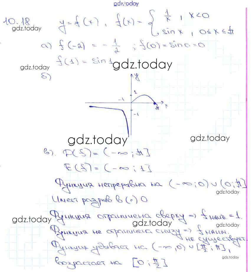 Ответы к §10. Функция y = sin x, ее свойства и график Глава 2 10. 18 Задачнику по Алгебре для 10-11 класса Мордкович, Денищева Базовый уровень Мнемозина 2015