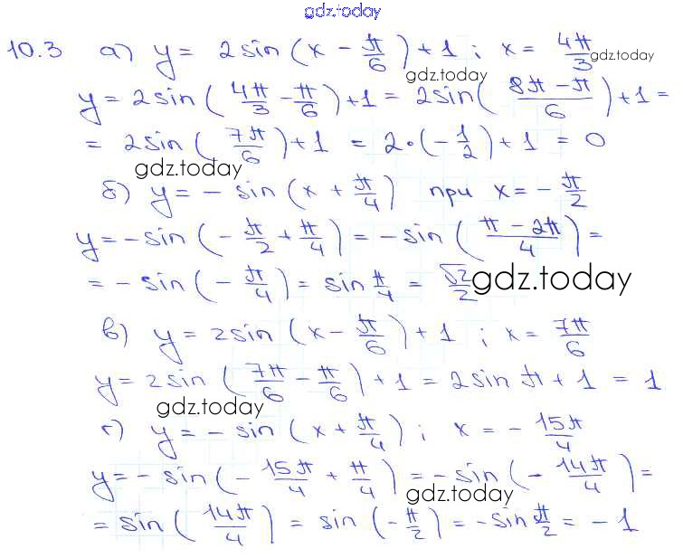 Ответы к §10. Функция y = sin x, ее свойства и график Глава 2 10. 3 Задачнику по Алгебре для 10-11 класса Мордкович, Денищева Базовый уровень Мнемозина 2015