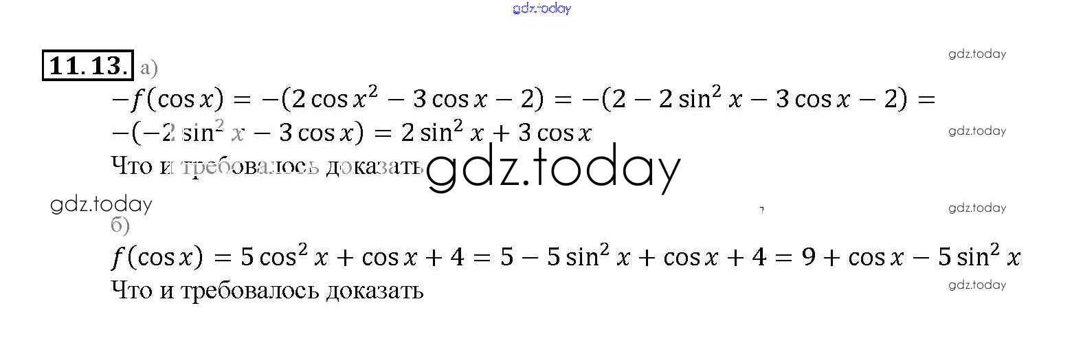 Ответы к §11. Функция y = cos x, ее свойства и график Глава 2 11. 13 Задачнику по Алгебре для 10-11 класса Мордкович, Денищева Базовый уровень Мнемозина 2015