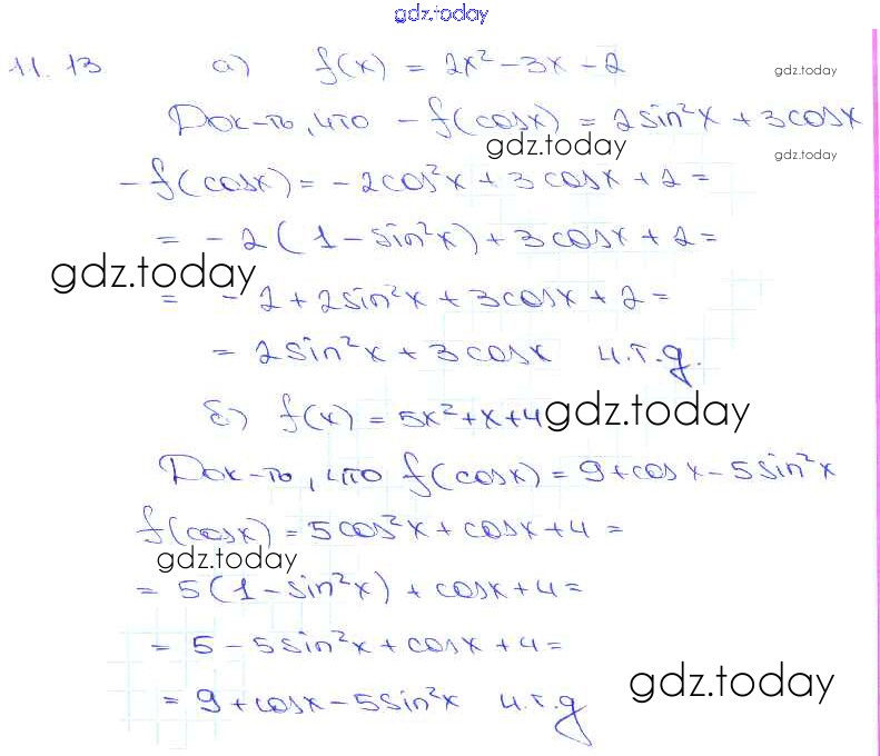 На страницах сайта gdz.today вы найдете учебный и вспомогательный материал, направленный на улучшения знаний школьной программы. ГДЗ - онлайн мир знаний §11. Функция y = cos x, ее свойства и график Глава 2 11. 13 Задачнику по Алгебре для 10-11 класса Мордкович, Денищева Базовый уровень Мнемозина 2015