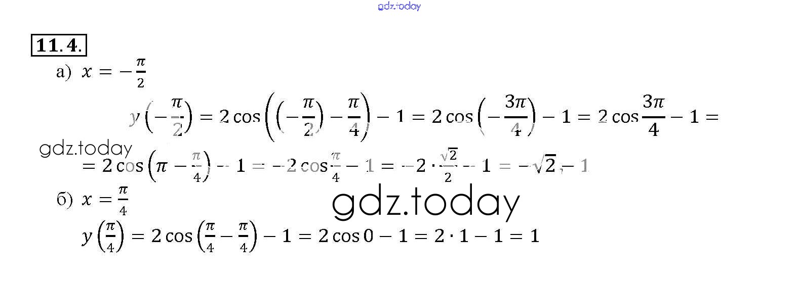 Ответы к §11. Функция y = cos x, ее свойства и график Глава 2 11. 4 Задачнику по Алгебре для 10-11 класса Мордкович, Денищева Базовый уровень Мнемозина 2015