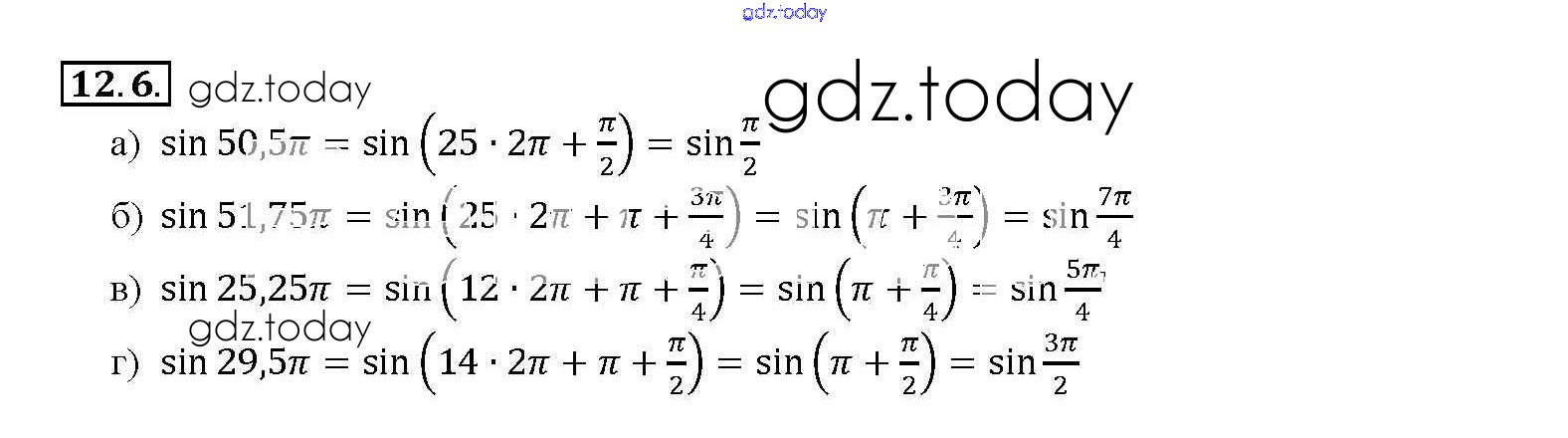 На страницах сайта gdz.today вы найдете учебный и вспомогательный материал, направленный на улучшения знаний школьной программы. ГДЗ - онлайн мир знаний §12. Периодичность функций y = sin x, y = cos x Глава 2 12. 6 Задачнику по Алгебре для 10-11 класса Мордкович, Денищева Базовый уровень Мнемозина 2015