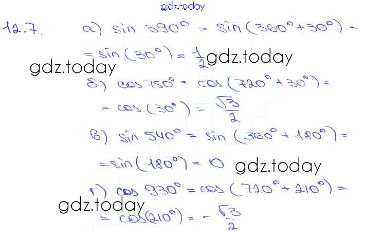 Ответы к §12. Периодичность функций y = sin x, y = cos x Глава 2 12. 7 Задачнику по Алгебре для 10-11 класса Мордкович, Денищева Базовый уровень Мнемозина 2015