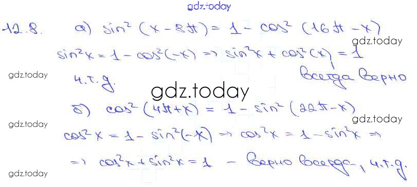 На страницах сайта gdz.today вы найдете учебный и вспомогательный материал, направленный на улучшения знаний школьной программы. ГДЗ - онлайн мир знаний §12. Периодичность функций y = sin x, y = cos x Глава 2 12. 8 Задачнику по Алгебре для 10-11 класса Мордкович, Денищева Базовый уровень Мнемозина 2015