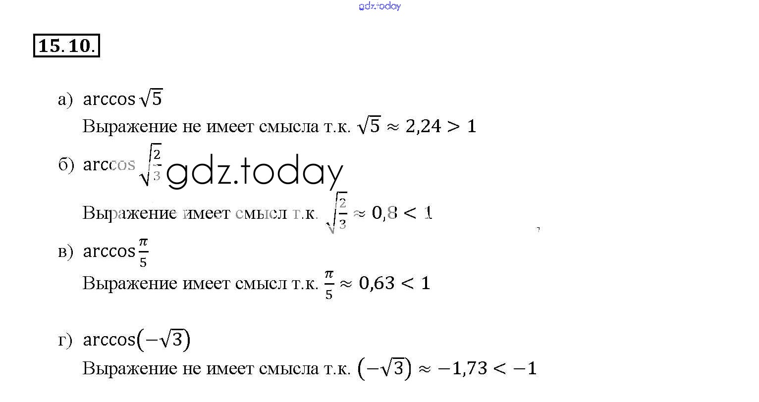 Ответы к §15. Арккосинус. Решение уравнения cos t = a Глава 3 15. 10 Задачнику по Алгебре для 10-11 класса Мордкович, Денищева Базовый уровень Мнемозина 2015