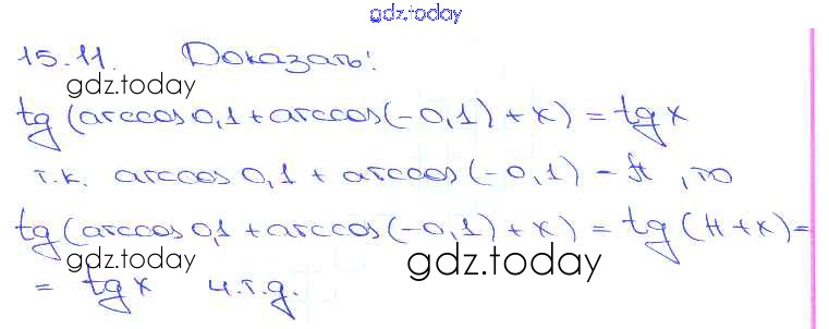 Ответы к §15. Арккосинус. Решение уравнения cos t = a Глава 3 15. 11 Задачнику по Алгебре для 10-11 класса Мордкович, Денищева Базовый уровень Мнемозина 2015