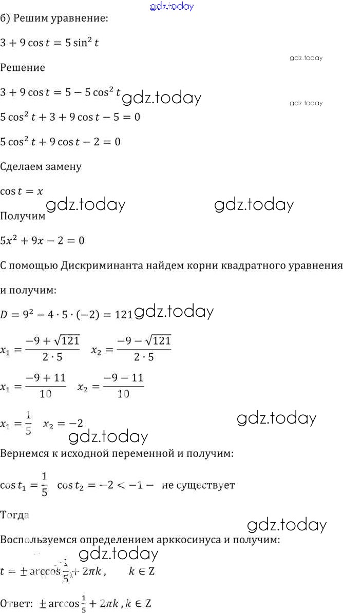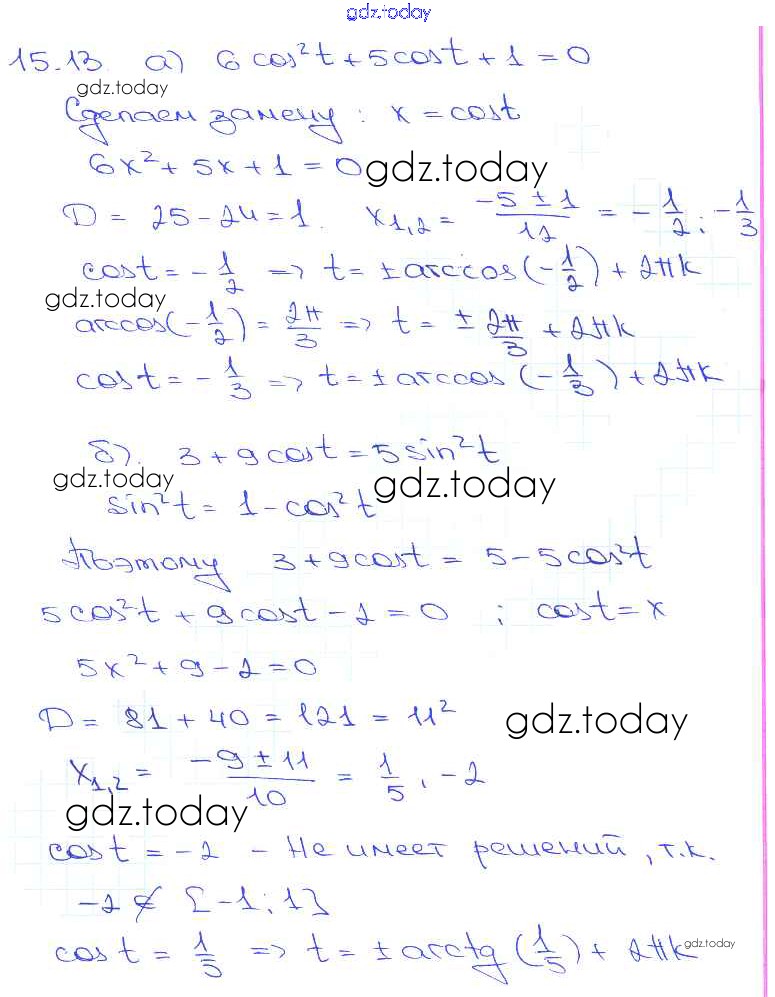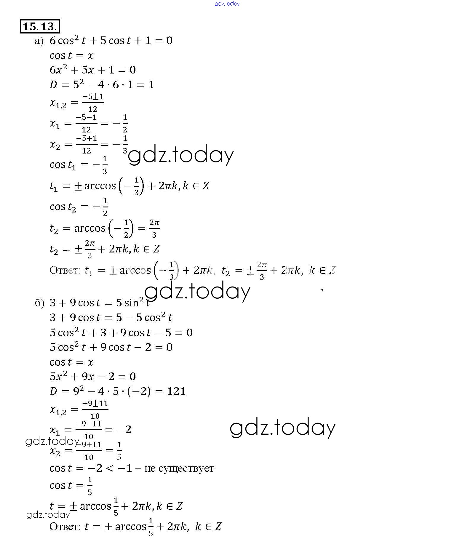 Ответы к §15. Арккосинус. Решение уравнения cos t = a Глава 3 15. 13 Задачнику по Алгебре для 10-11 класса Мордкович, Денищева Базовый уровень Мнемозина 2015