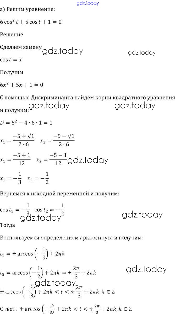 На страницах сайта gdz.today вы найдете учебный и вспомогательный материал, направленный на улучшения знаний школьной программы. ГДЗ - онлайн мир знаний §15. Арккосинус. Решение уравнения cos t = a Глава 3 15. 13 Задачнику по Алгебре для 10-11 класса Мордкович, Денищева Базовый уровень Мнемозина 2015
