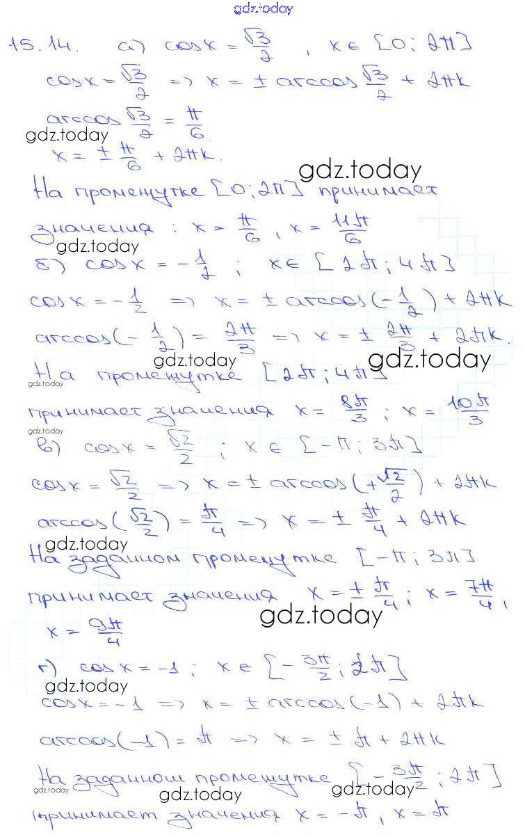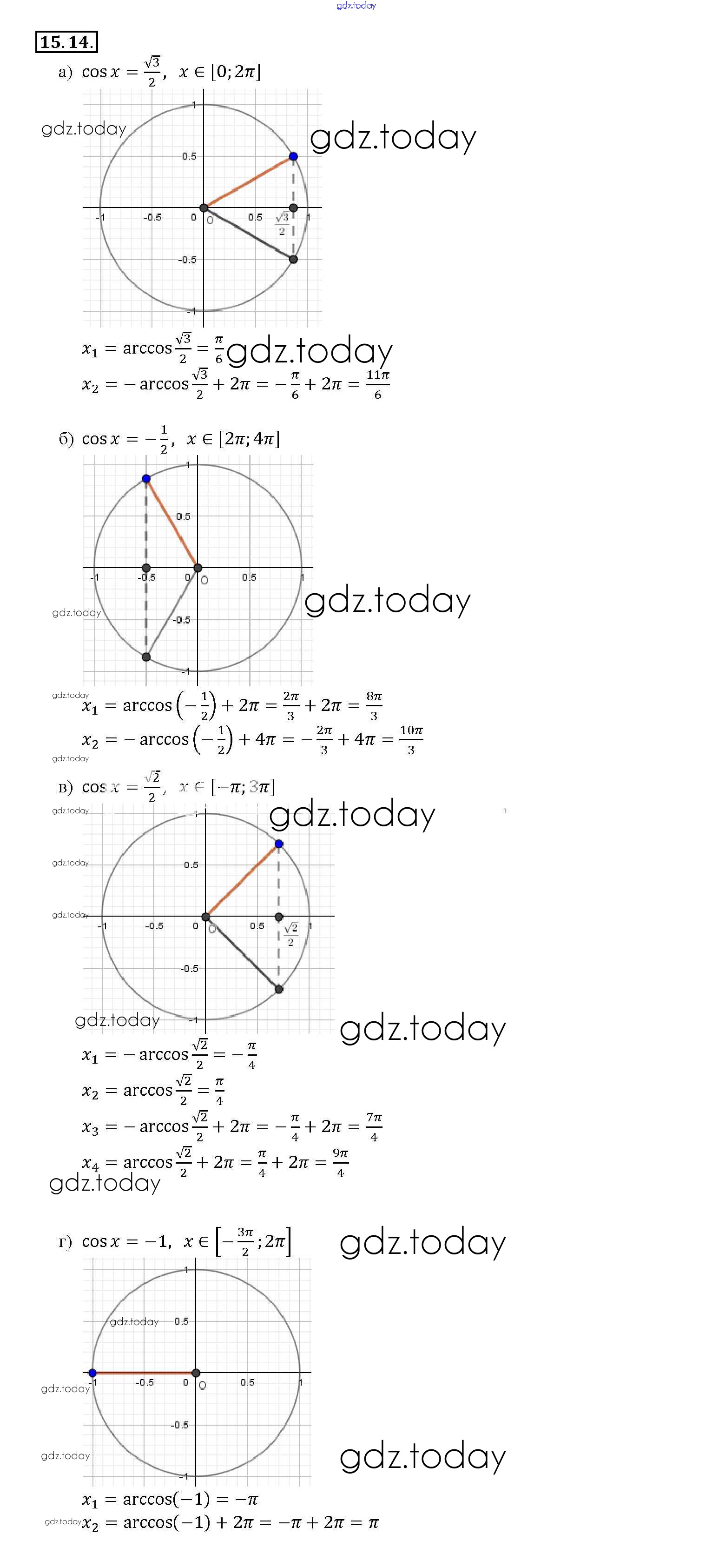 Ответы к §15. Арккосинус. Решение уравнения cos t = a Глава 3 15. 14 Задачнику по Алгебре для 10-11 класса Мордкович, Денищева Базовый уровень Мнемозина 2015