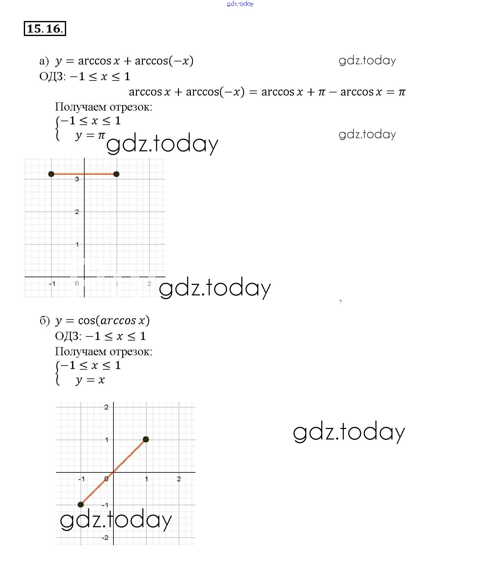 На страницах сайта gdz.today вы найдете учебный и вспомогательный материал, направленный на улучшения знаний школьной программы. ГДЗ - онлайн мир знаний §15. Арккосинус. Решение уравнения cos t = a Глава 3 15. 16 Задачнику по Алгебре для 10-11 класса Мордкович, Денищева Базовый уровень Мнемозина 2015