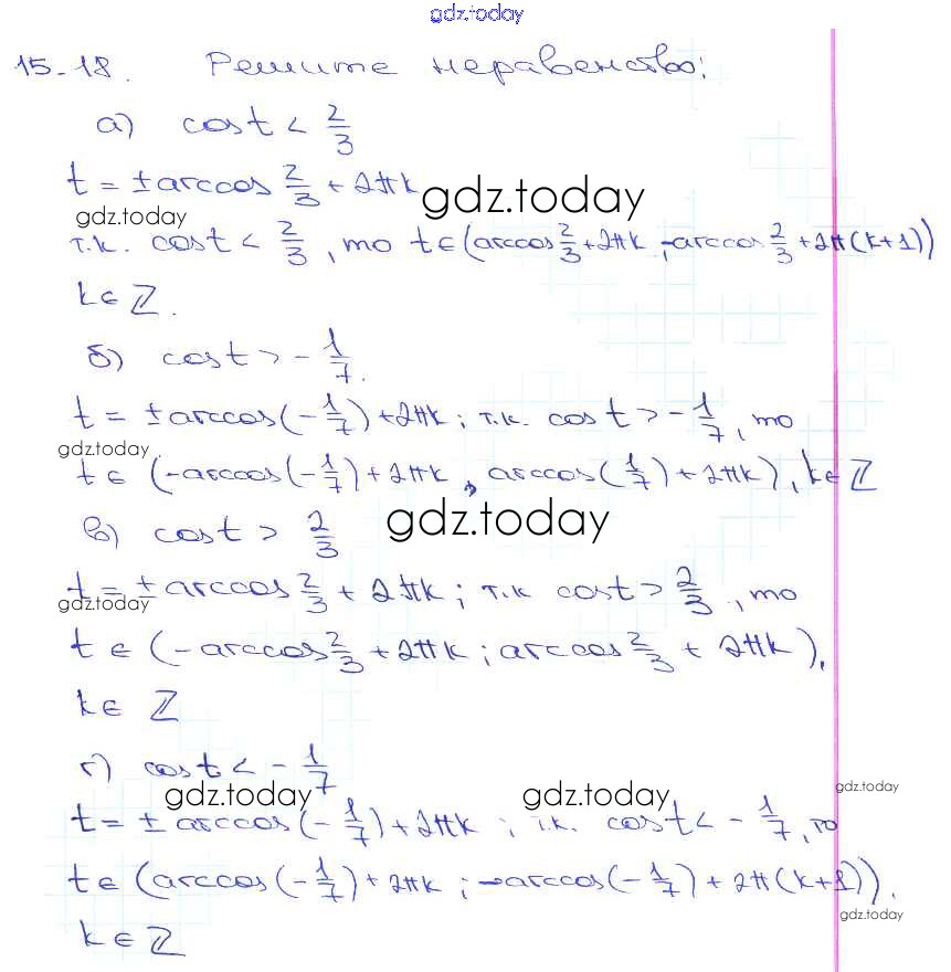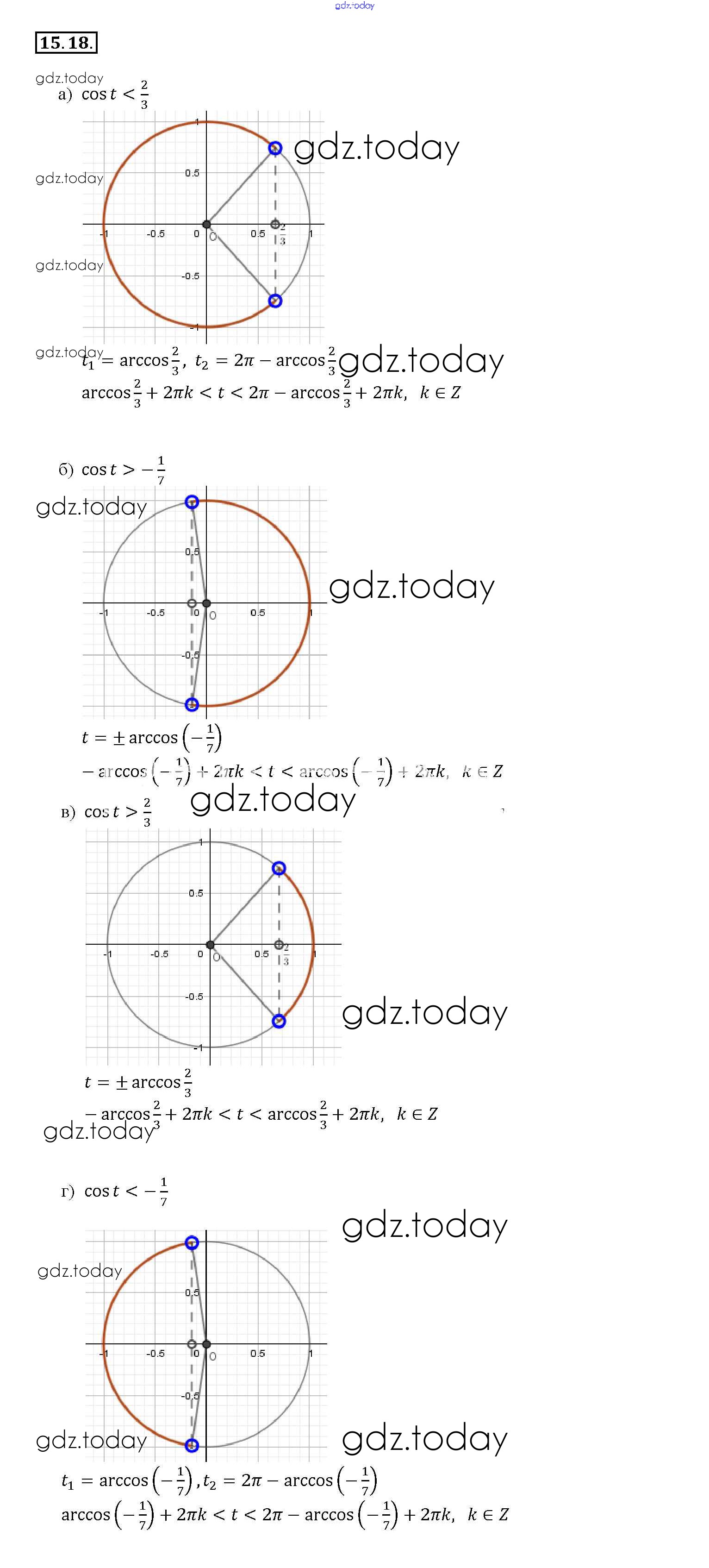 Ответы к §15. Арккосинус. Решение уравнения cos t = a Глава 3 15. 18 Задачнику по Алгебре для 10-11 класса Мордкович, Денищева Базовый уровень Мнемозина 2015