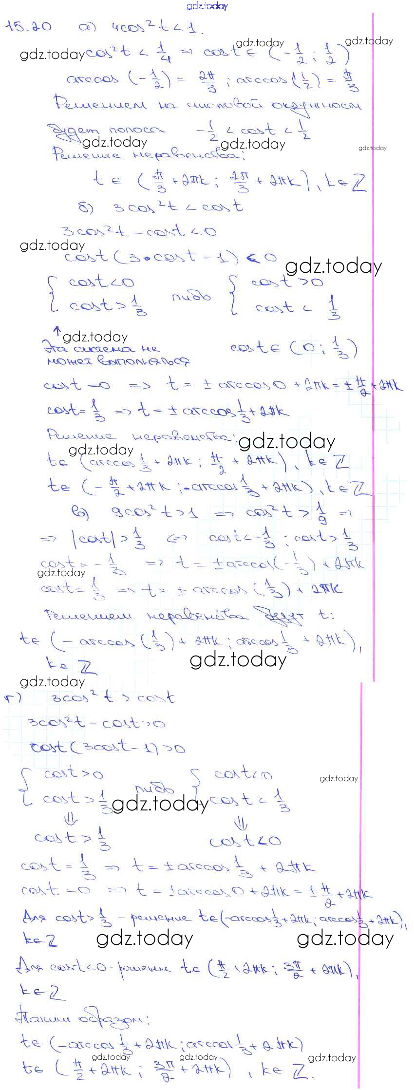 На страницах сайта gdz.today вы найдете учебный и вспомогательный материал, направленный на улучшения знаний школьной программы. ГДЗ - онлайн мир знаний §15. Арккосинус. Решение уравнения cos t = a Глава 3 15. 20 Задачнику по Алгебре для 10-11 класса Мордкович, Денищева Базовый уровень Мнемозина 2015