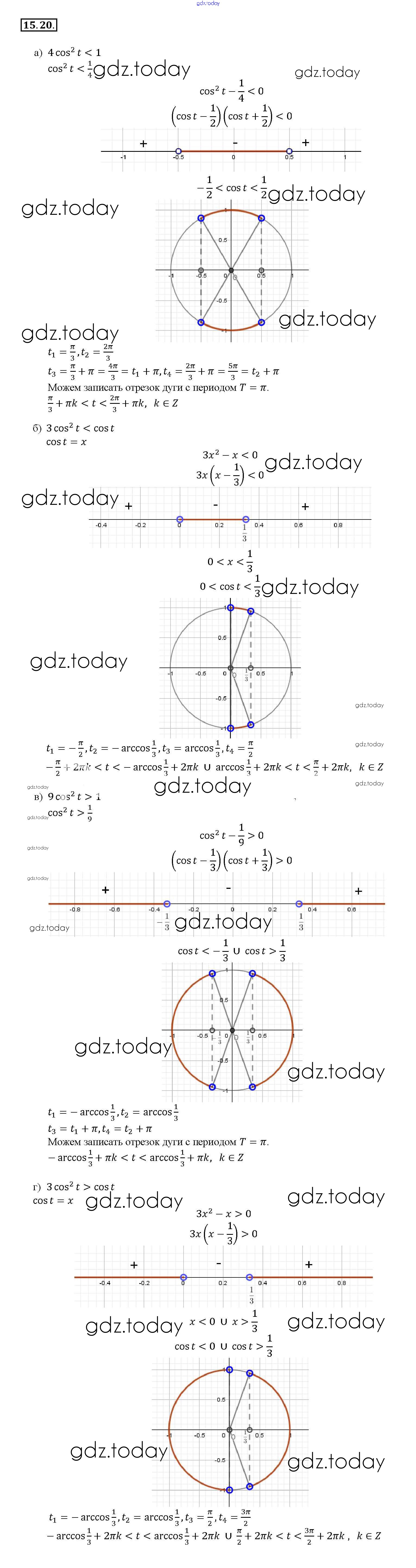 Ответы к §15. Арккосинус. Решение уравнения cos t = a Глава 3 15. 20 Задачнику по Алгебре для 10-11 класса Мордкович, Денищева Базовый уровень Мнемозина 2015