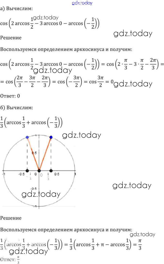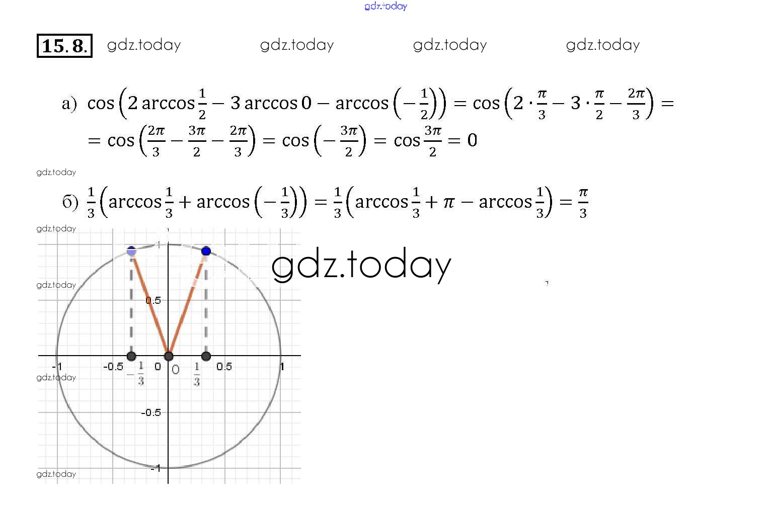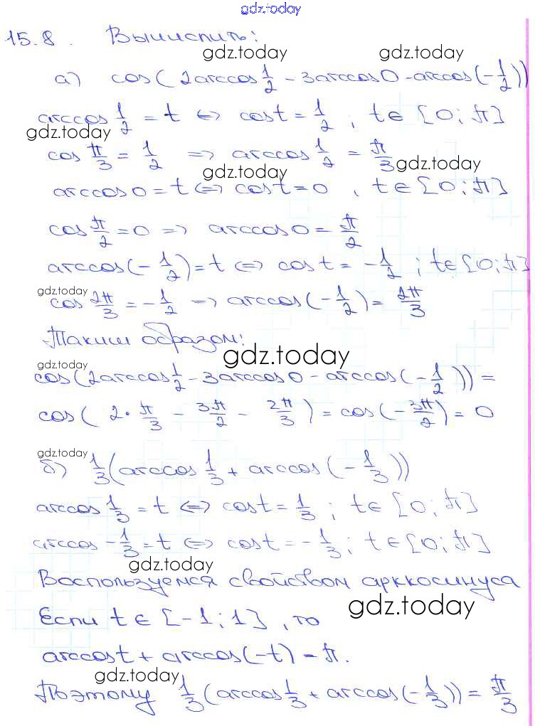 Ответы к §15. Арккосинус. Решение уравнения cos t = a Глава 3 15. 8 Задачнику по Алгебре для 10-11 класса Мордкович, Денищева Базовый уровень Мнемозина 2015