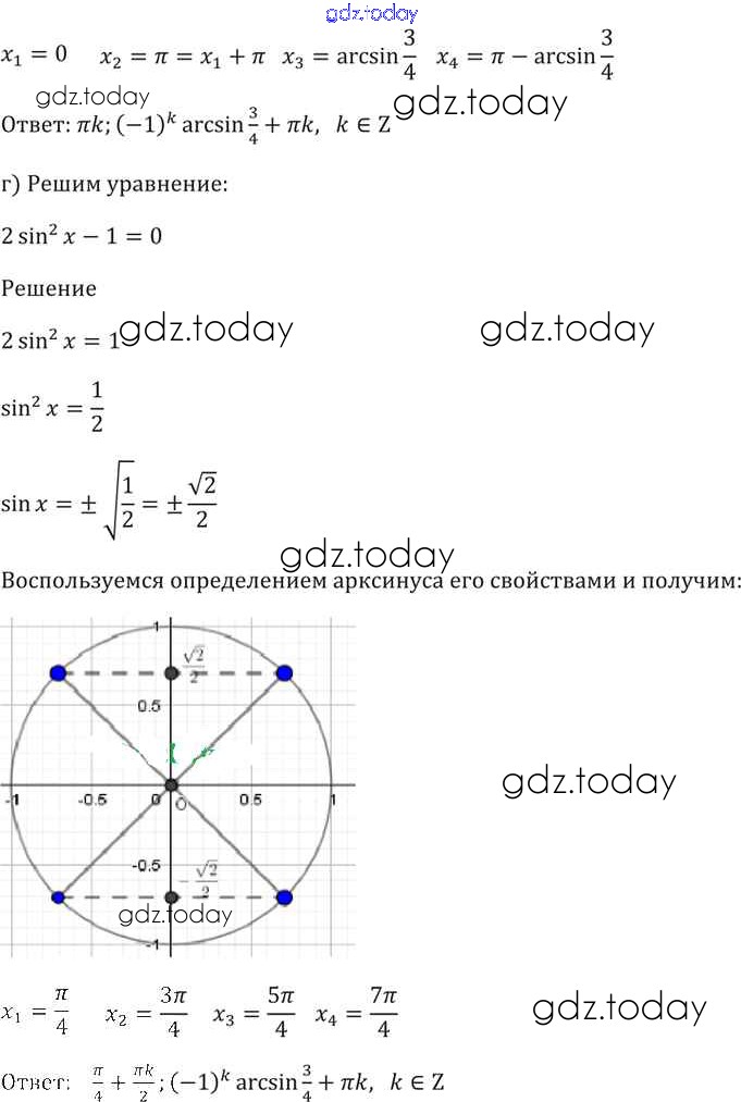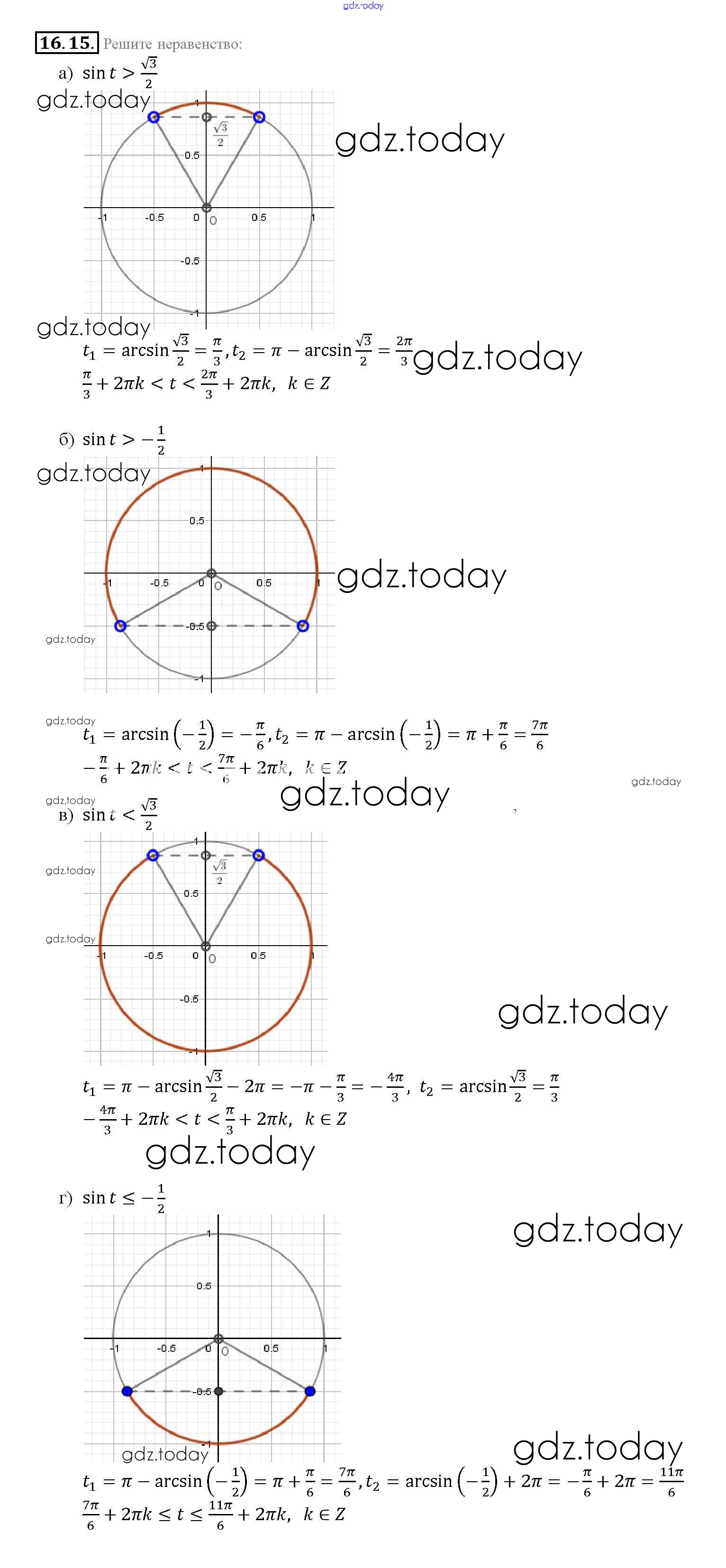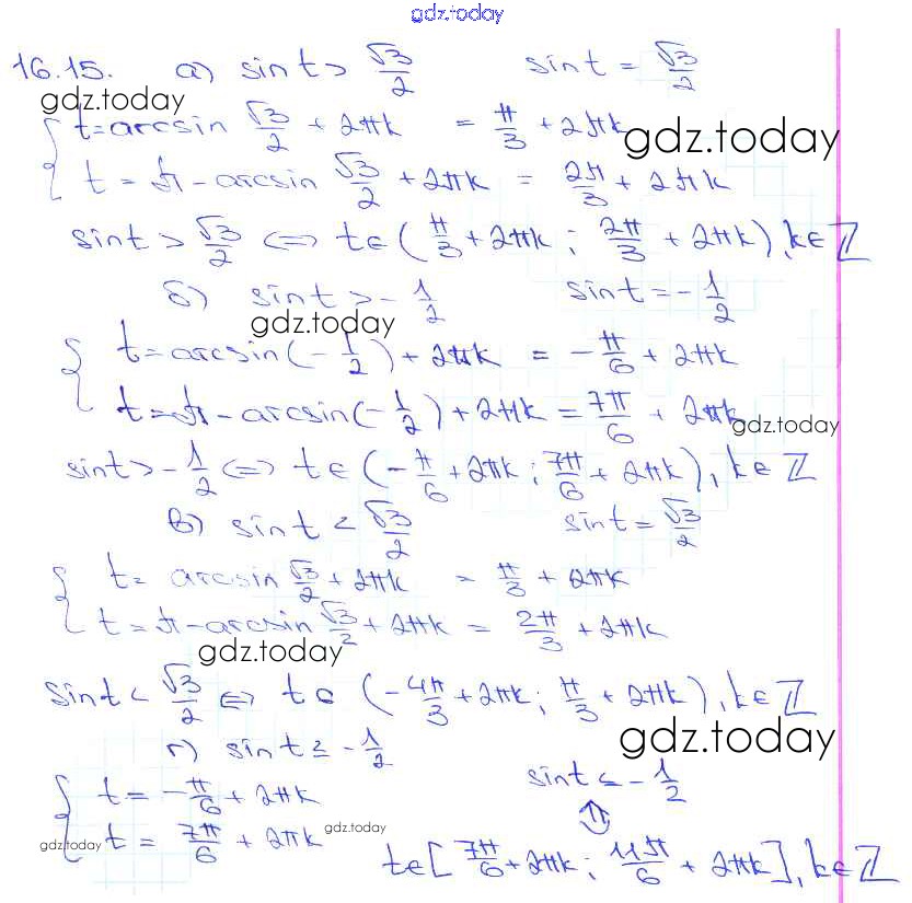 Ответы к §16. Арксинус. Решение уравнения sin t = a Глава 3 16. 15 Задачнику по Алгебре для 10-11 класса Мордкович, Денищева Базовый уровень Мнемозина 2015