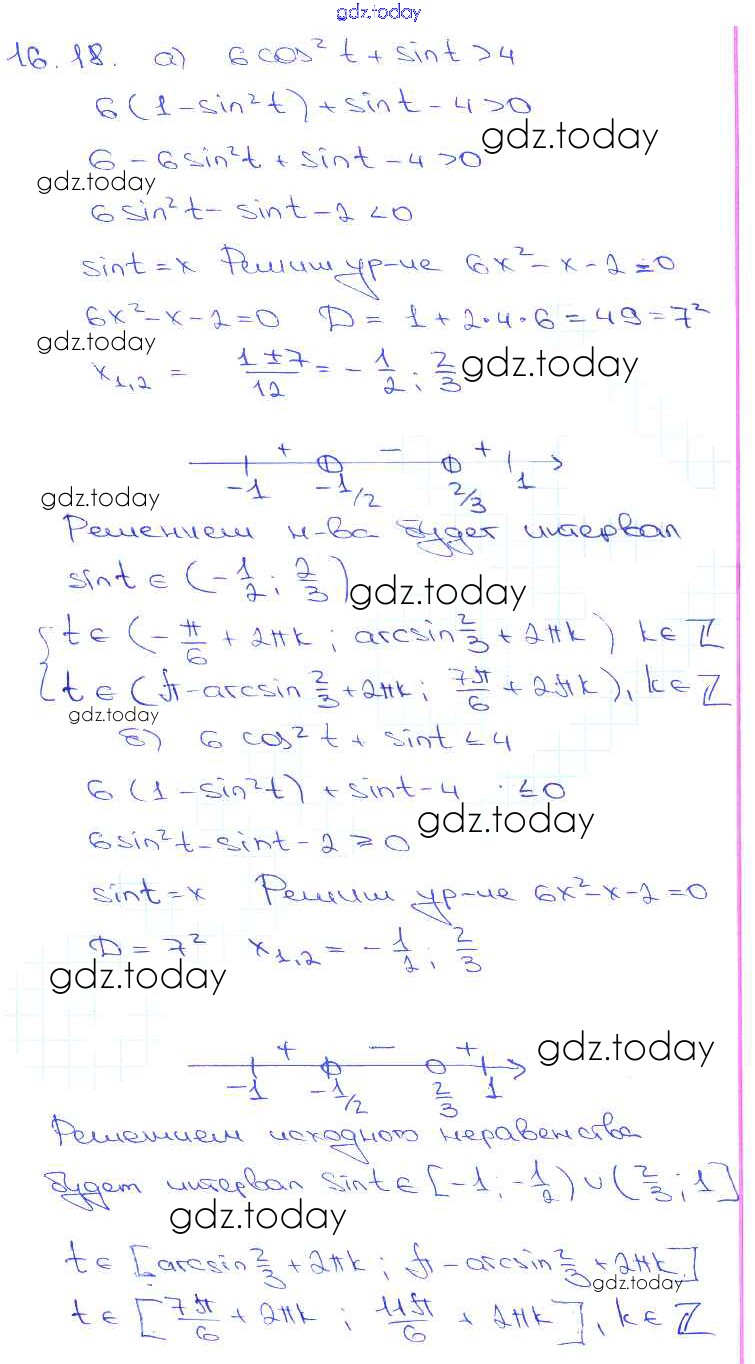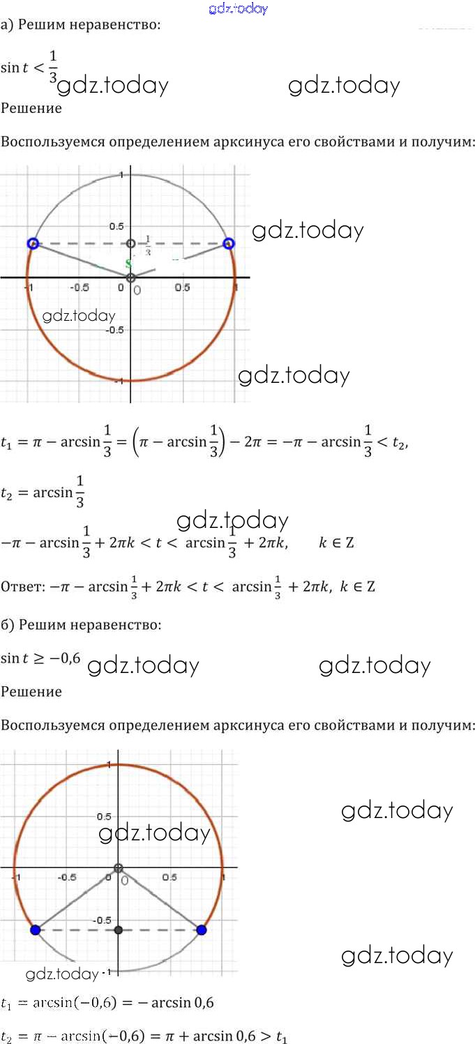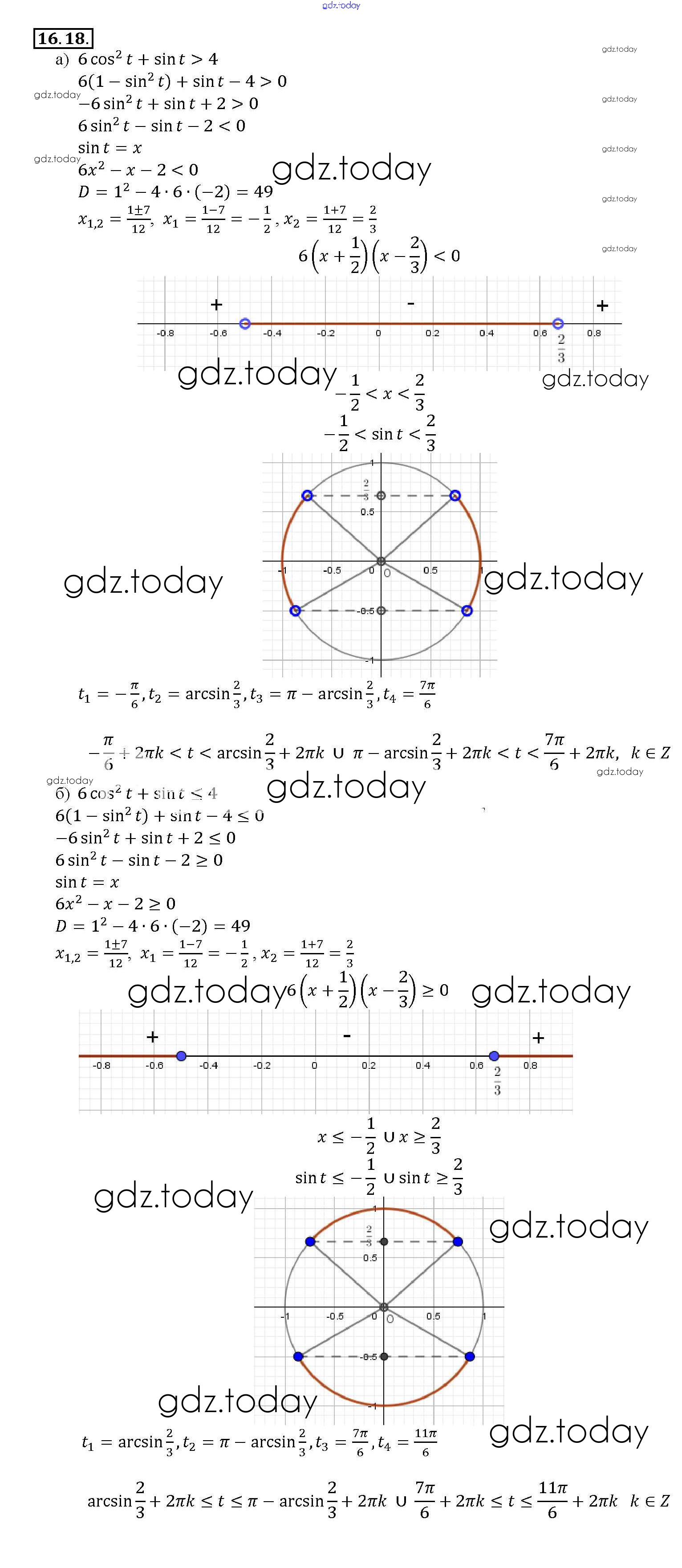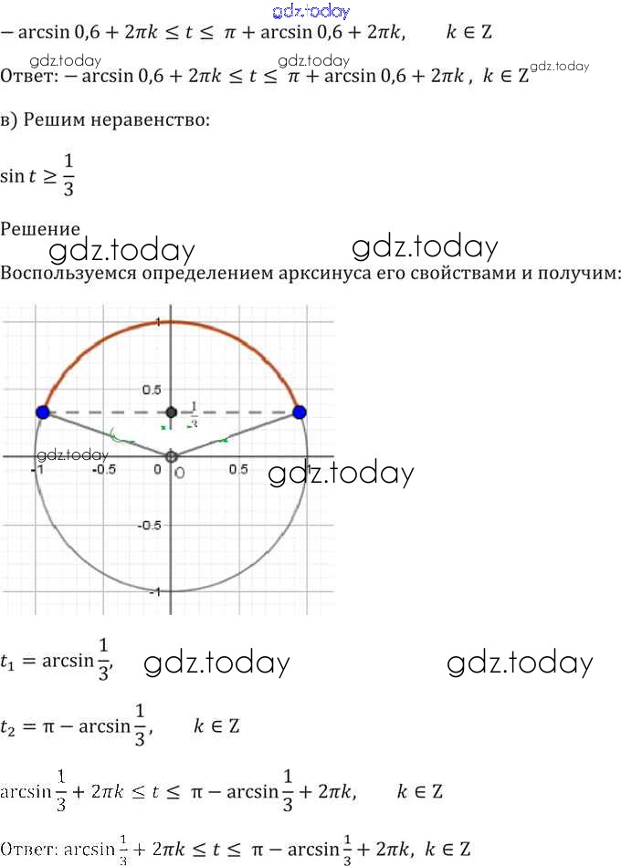 Ответы к §16. Арксинус. Решение уравнения sin t = a Глава 3 16. 18 Задачнику по Алгебре для 10-11 класса Мордкович, Денищева Базовый уровень Мнемозина 2015