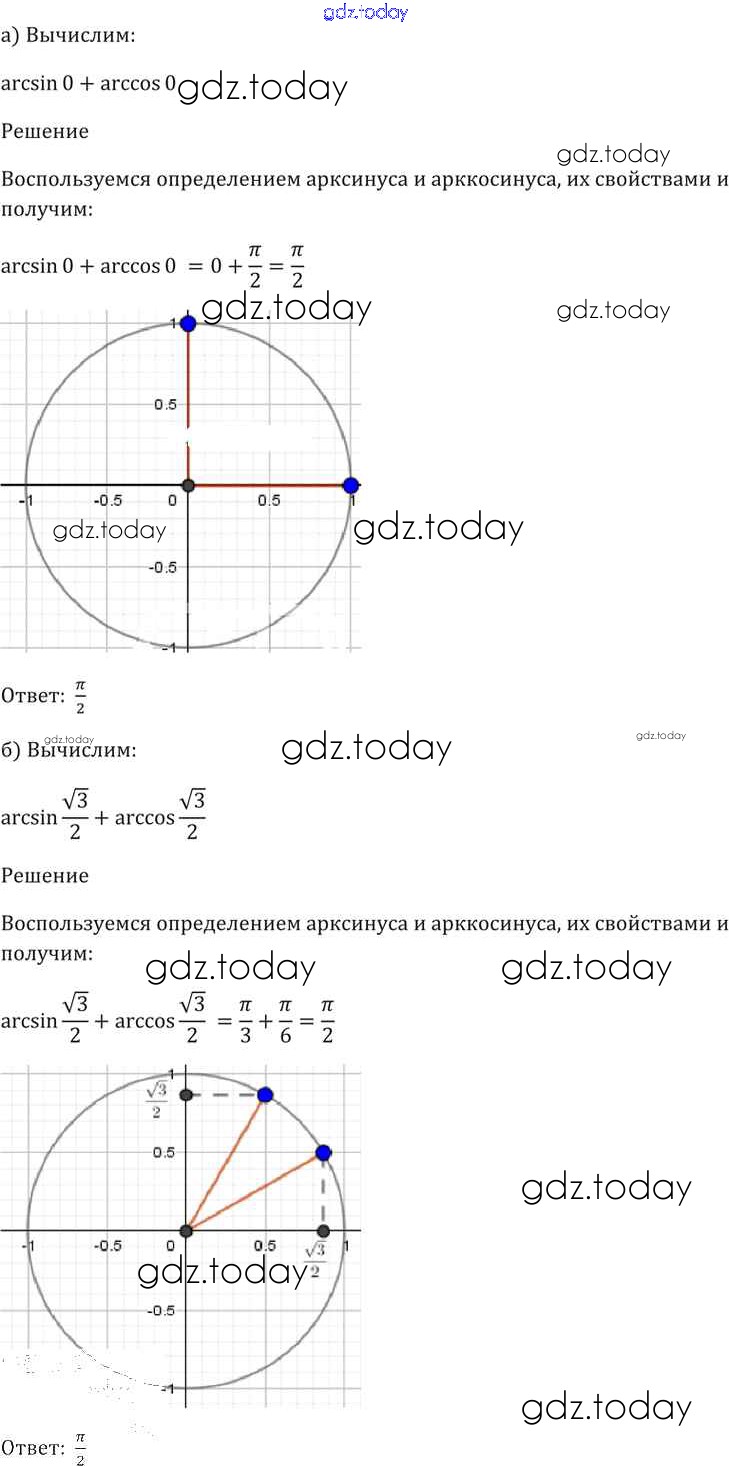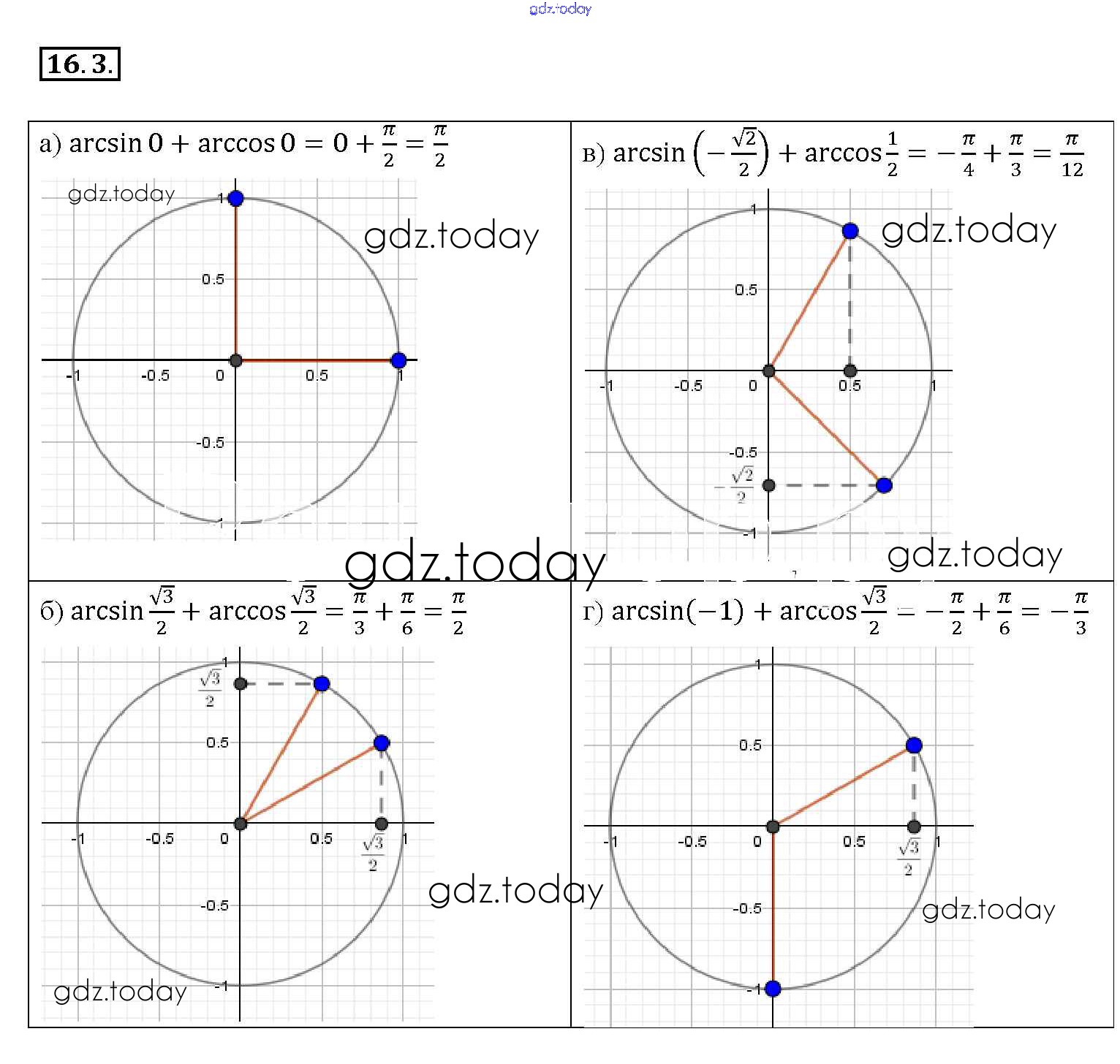 Ответы к §16. Арксинус. Решение уравнения sin t = a Глава 3 16. 3 Задачнику по Алгебре для 10-11 класса Мордкович, Денищева Базовый уровень Мнемозина 2015