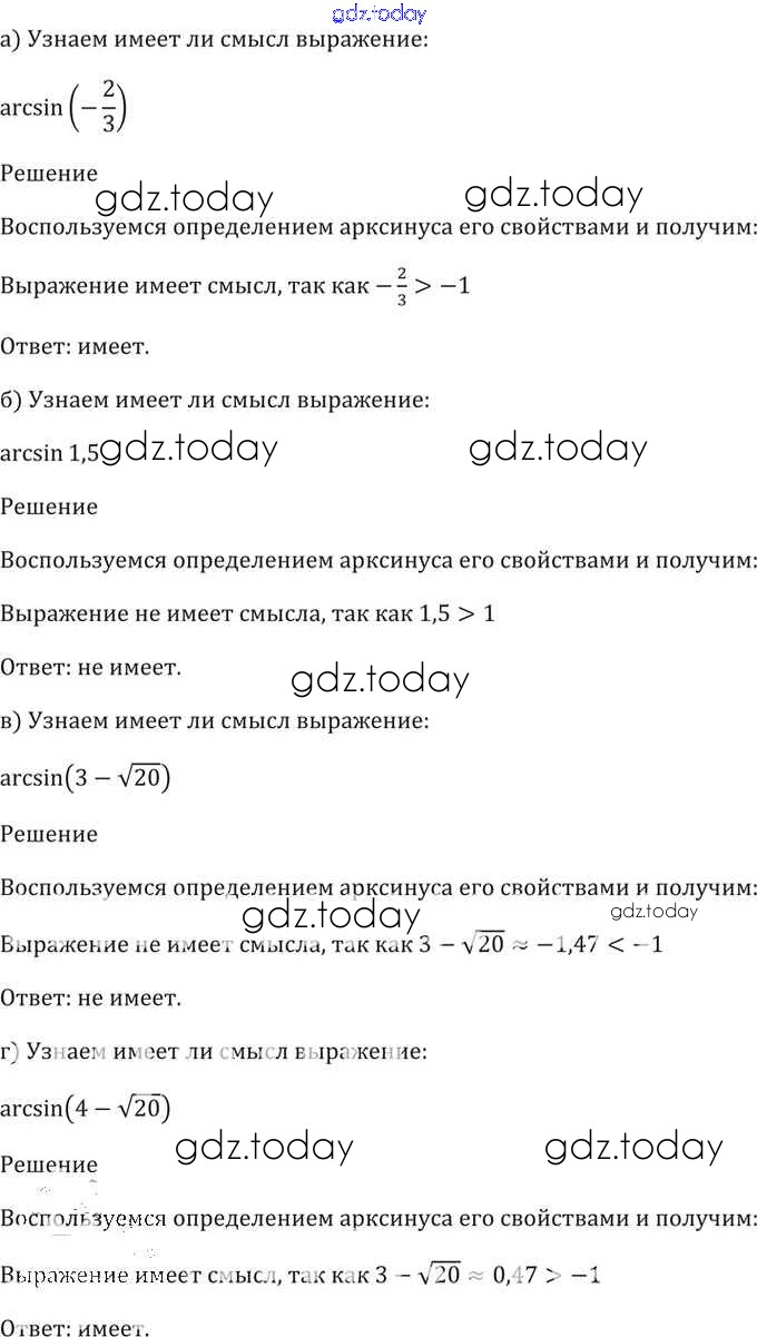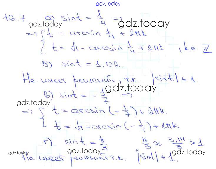 Ответы к §16. Арксинус. Решение уравнения sin t = a Глава 3 16. 7 Задачнику по Алгебре для 10-11 класса Мордкович, Денищева Базовый уровень Мнемозина 2015