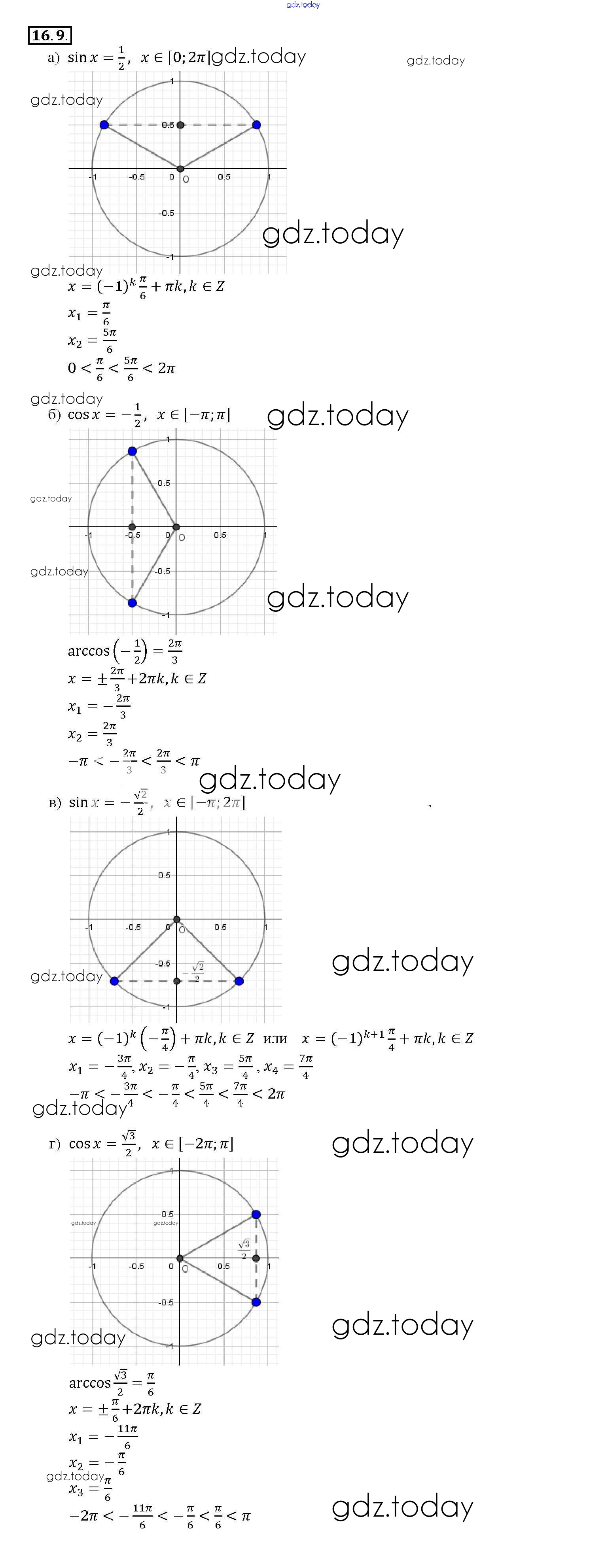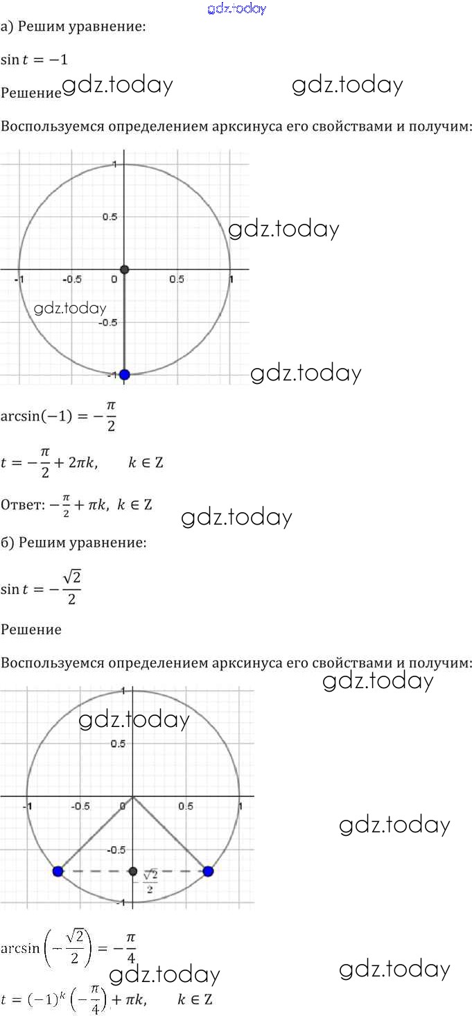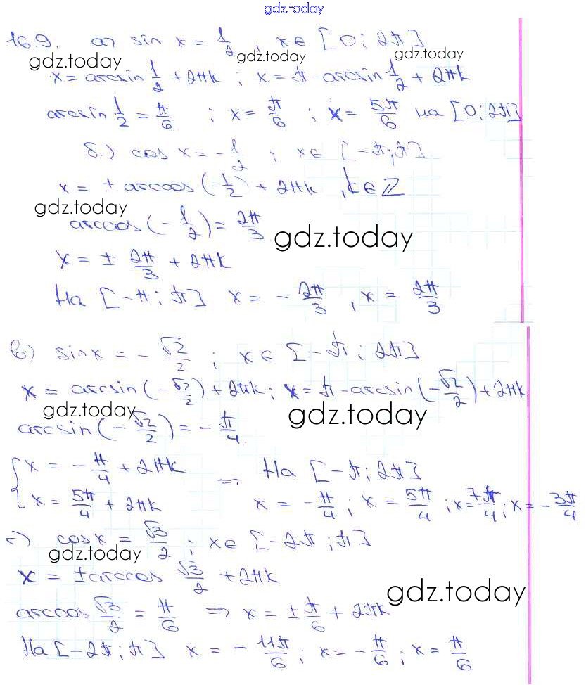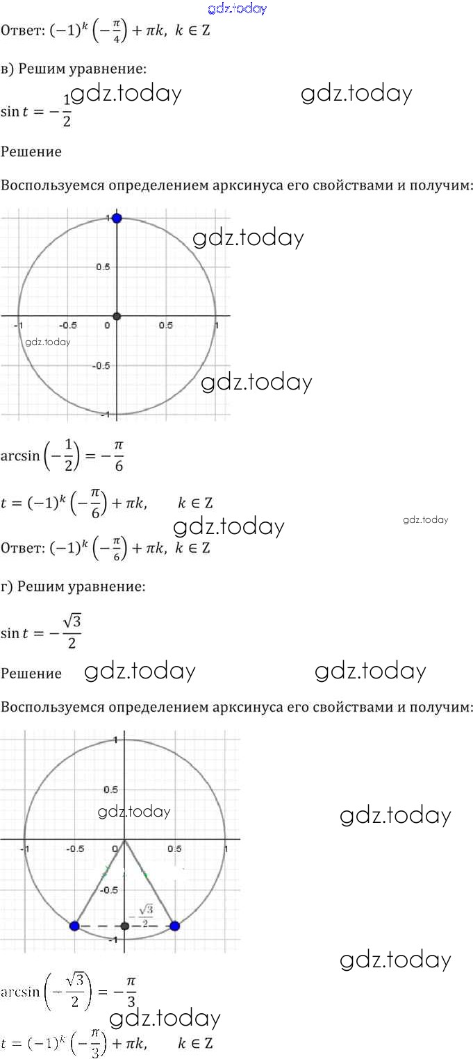 Ответы к §16. Арксинус. Решение уравнения sin t = a Глава 3 16. 9 Задачнику по Алгебре для 10-11 класса Мордкович, Денищева Базовый уровень Мнемозина 2015