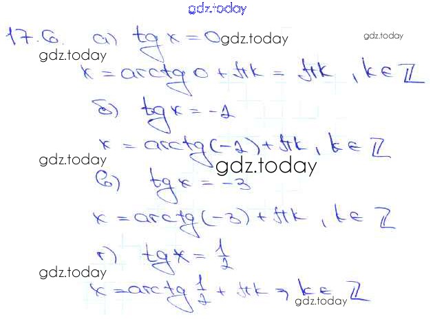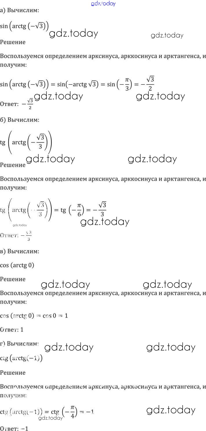 Ответы к §17. Арктангенс и арккотангенс Глава 3 17. 6 Задачнику по Алгебре для 10-11 класса Мордкович, Денищева Базовый уровень Мнемозина 2015
